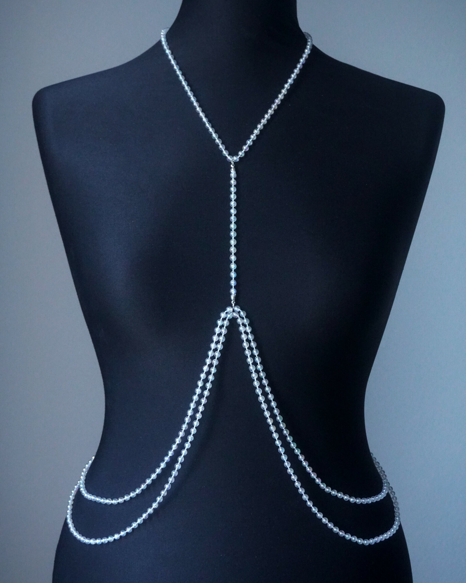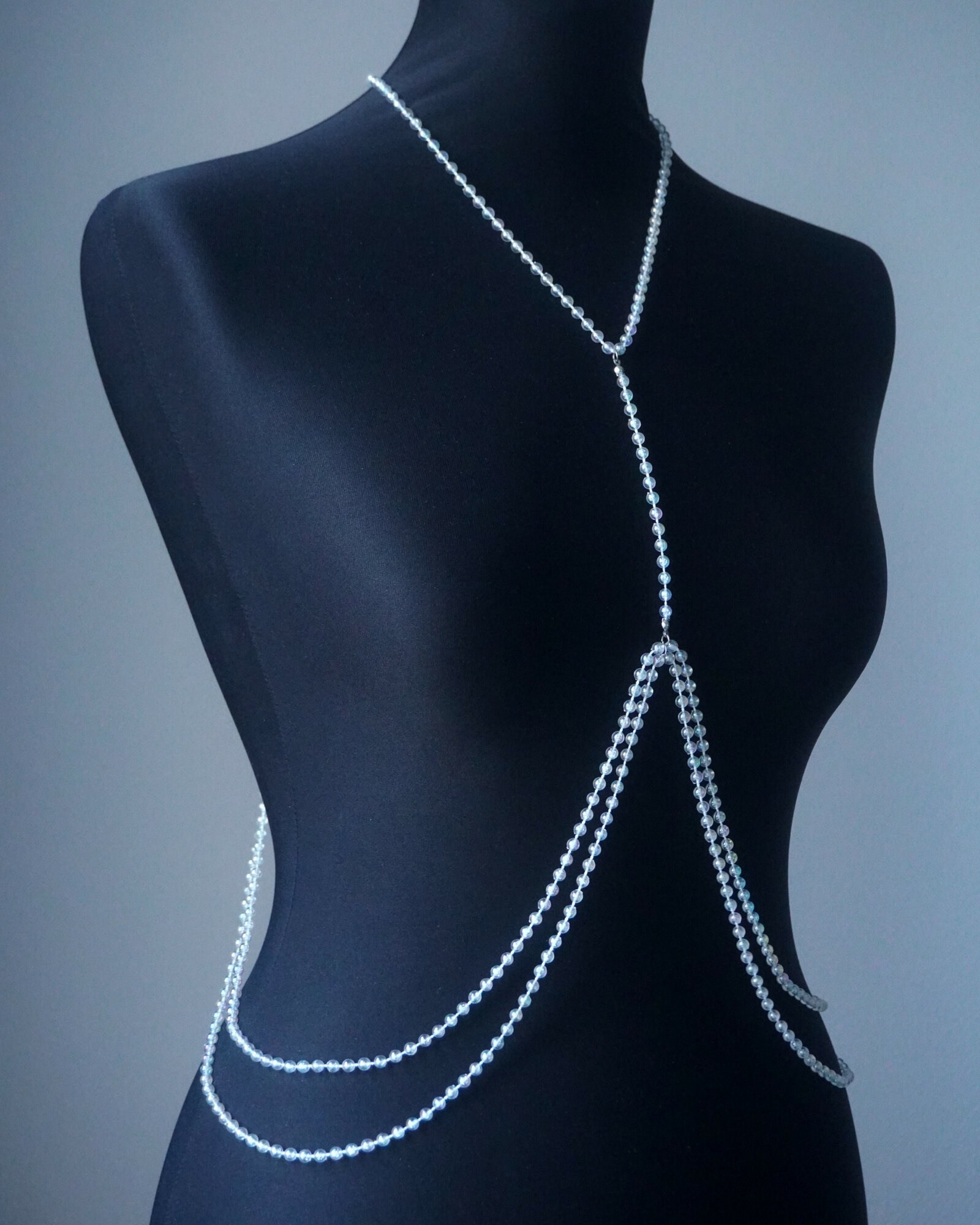 Бодичейн купальник прозрачная цепочка на тело и плечи из бусин