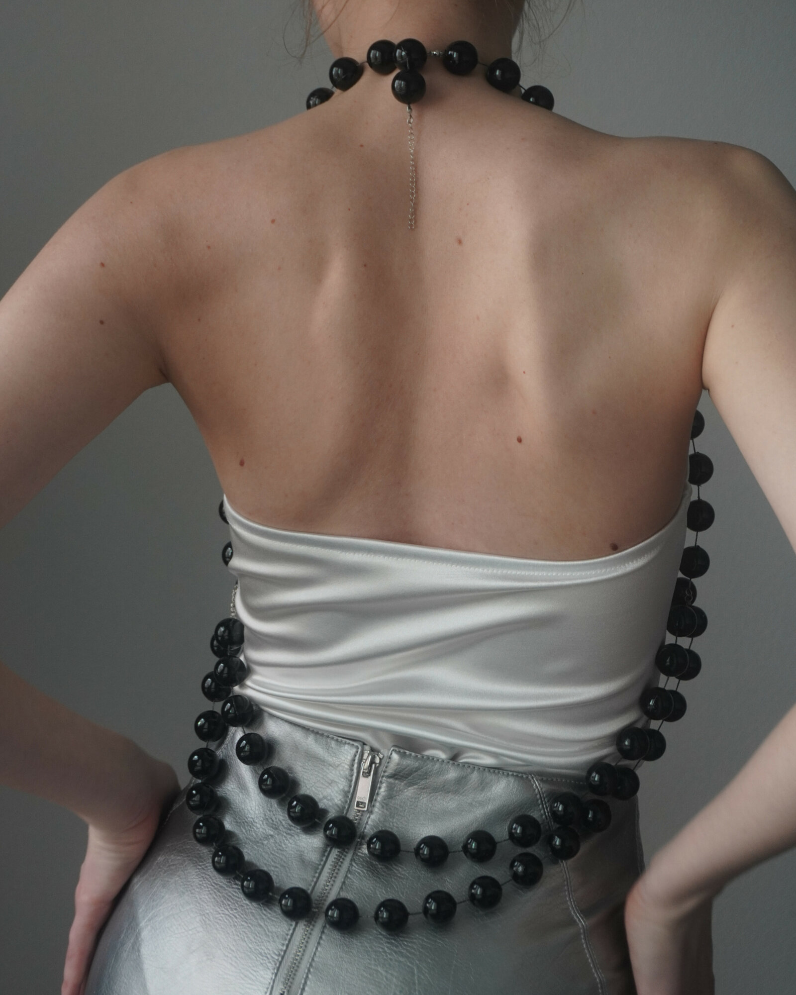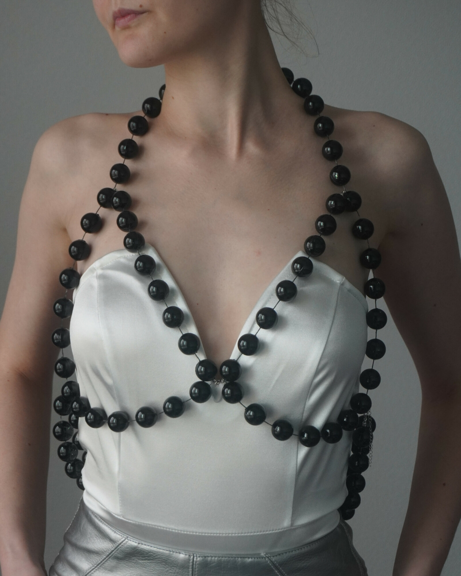 Бодичейн, черная цепочка на тело и плечи из бусин