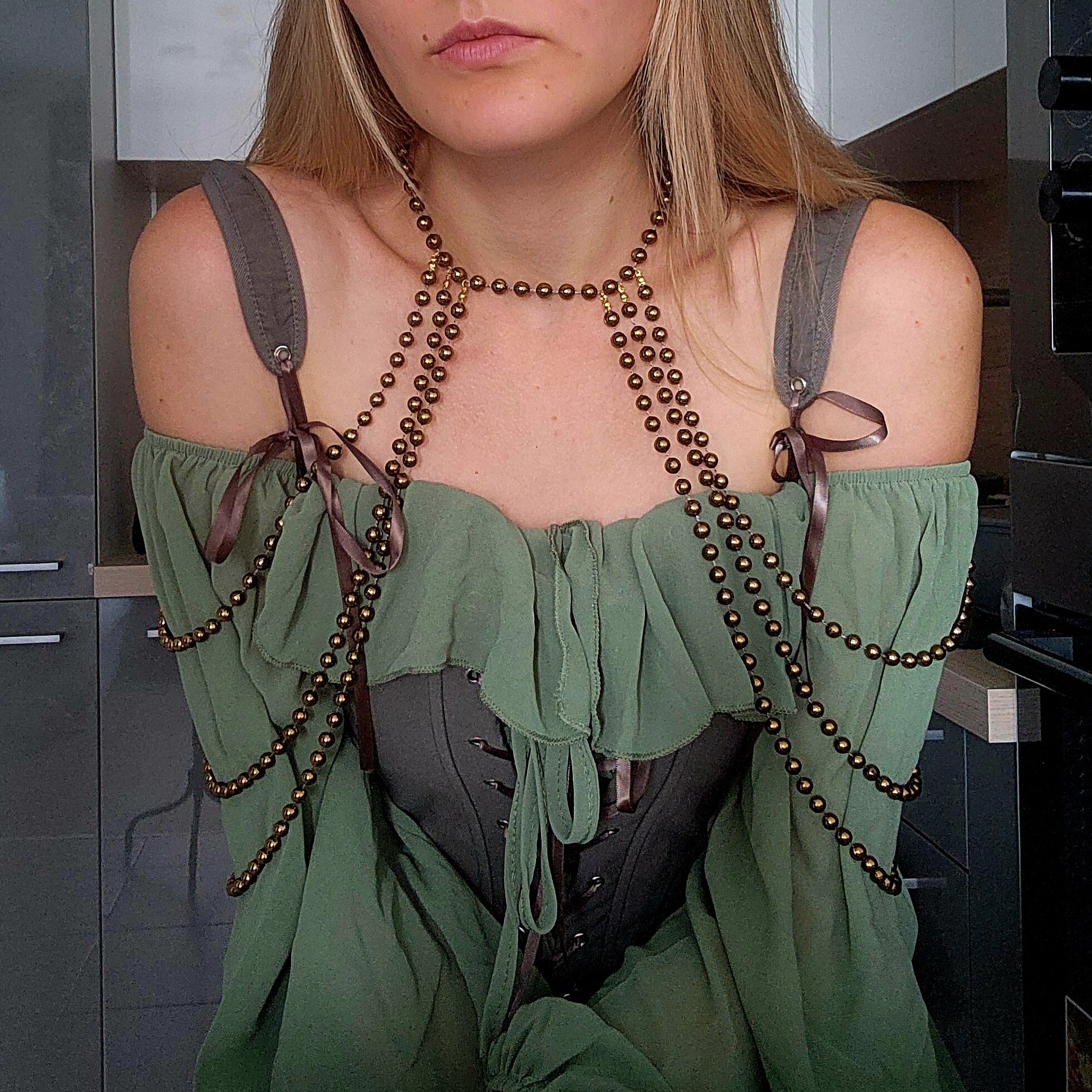 Бодичейн, медная цепочка на тело и плечи из бусин