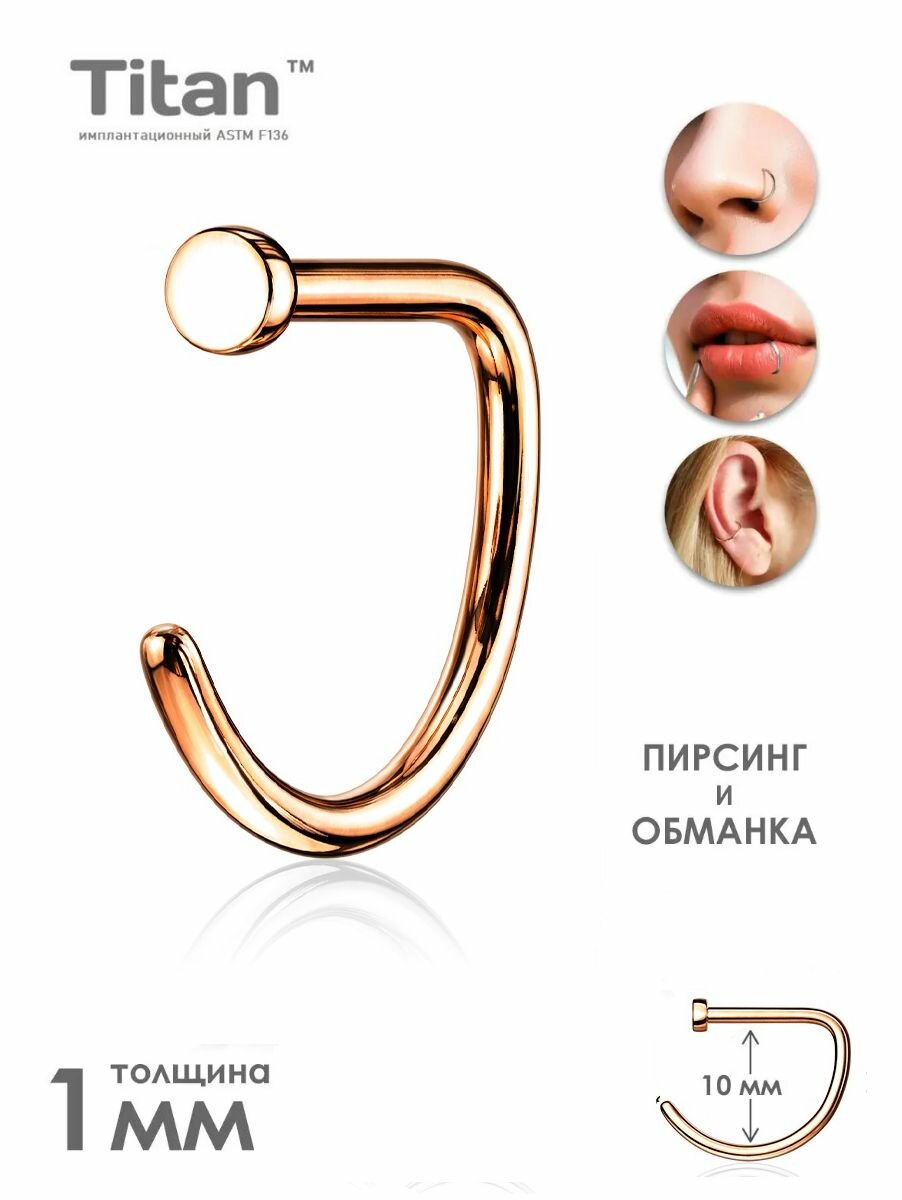 Купить Серьга циркуляр D-образная для пирсинга носа из титана Spikes/толщина 1 мм *диаметр 10 мм розовое золото