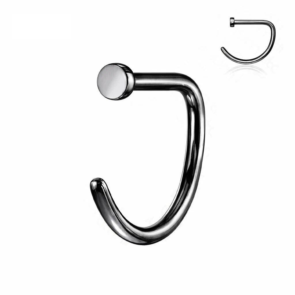 Серьга циркуляр D-образная для пирсинга носа из титана / чёрный цвет 1*10 мм
