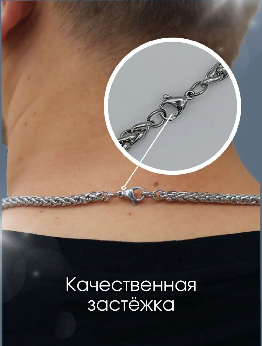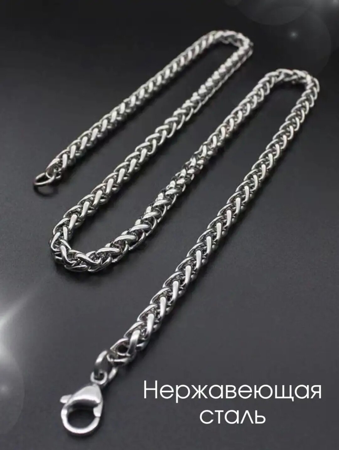 Стальная цепочка на шею плетение Колос 0.3x50см., серебристая, мужская, женская, с карабином, для кулонов, подвесок, жетонов