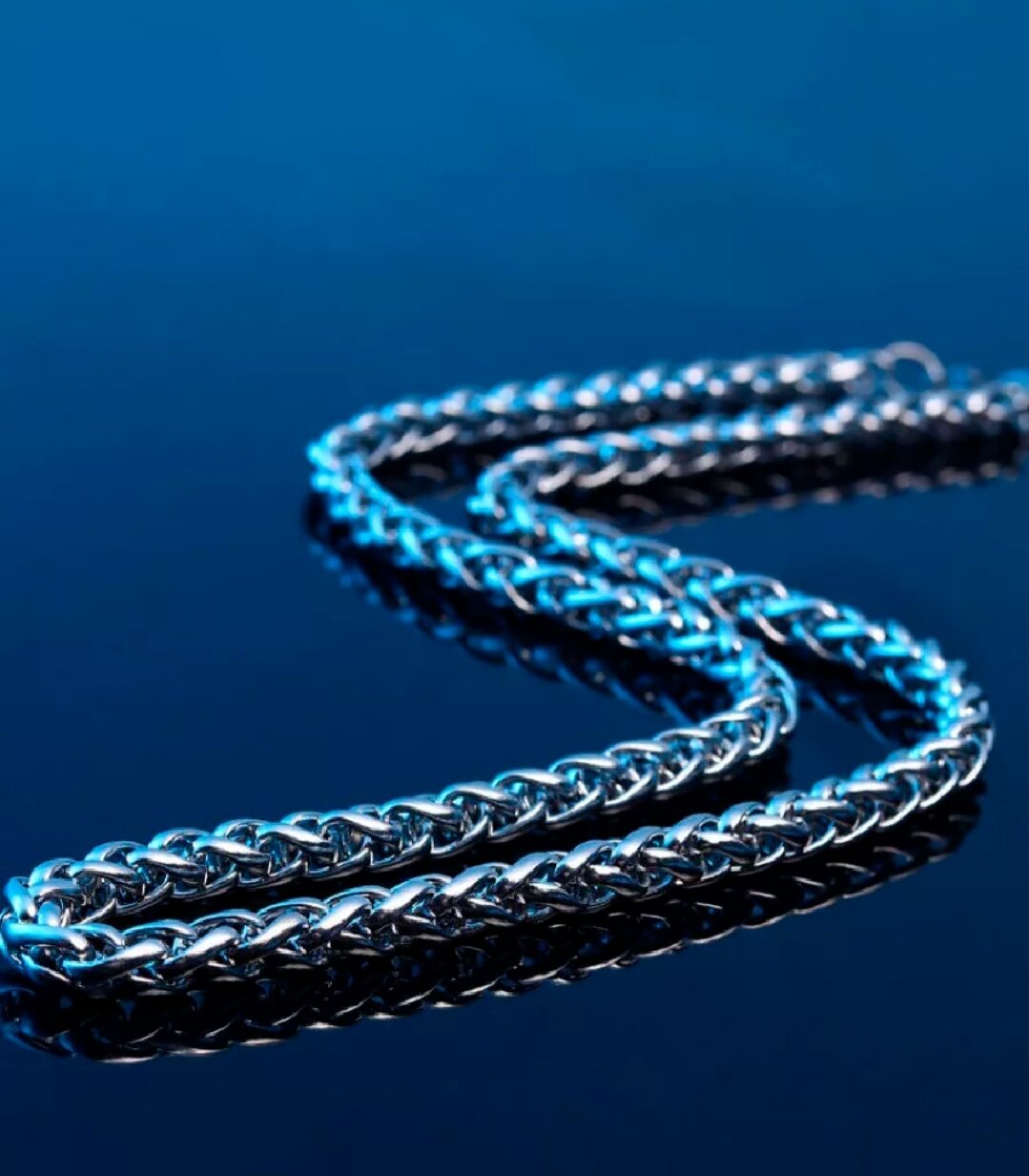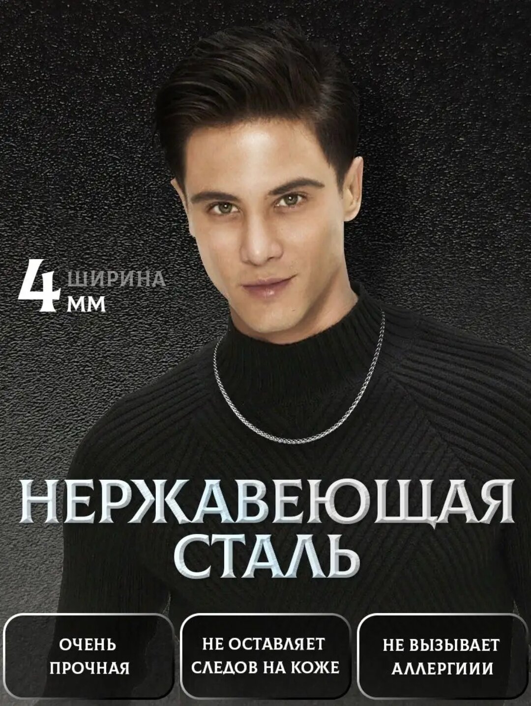 Стальная цепочка на шею плетение Колос 0.4x50см., серебристая, мужская, женская, с карабином, для кулонов, подвесок, жетонов интересное: