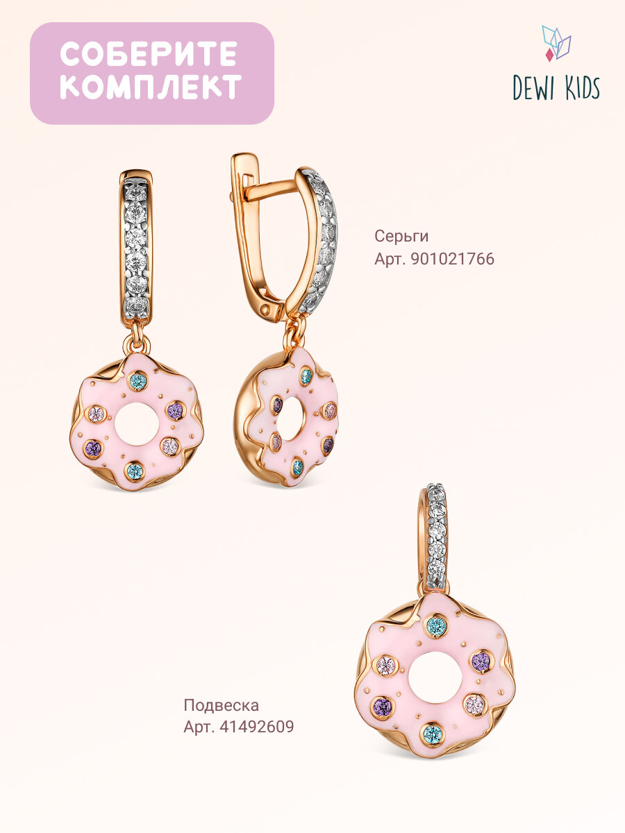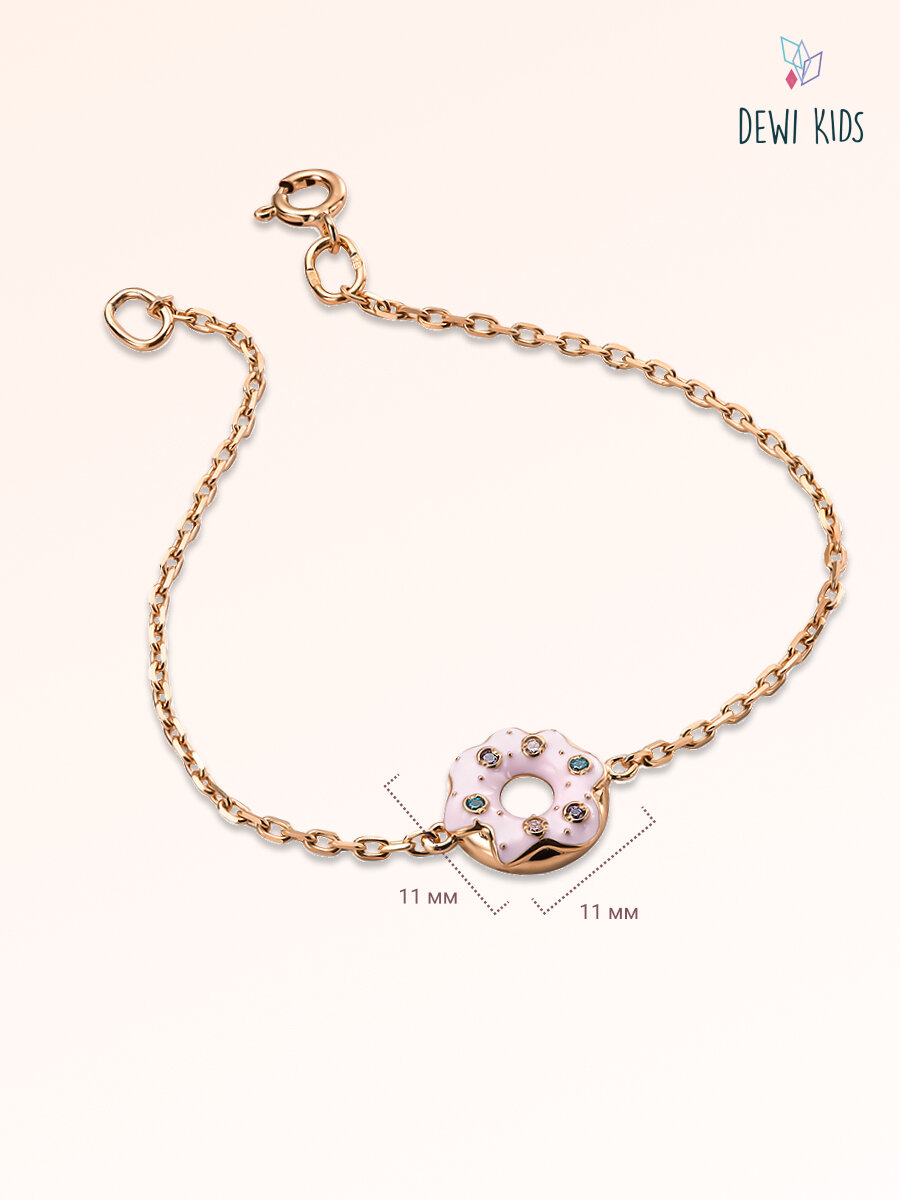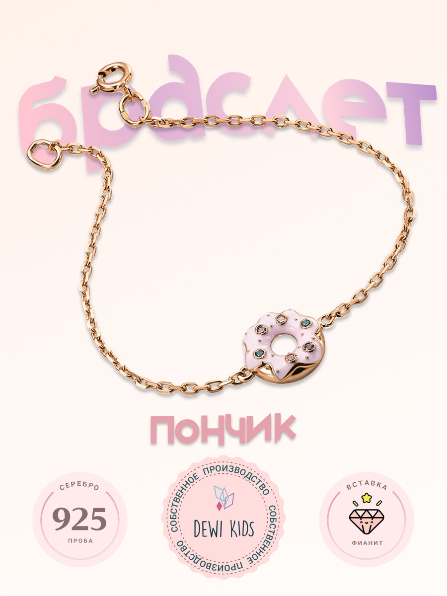 Детский серебряный браслет 925 пробы "Пончик в глазури" позолоченный с эмалью DEWI KIDS. интересное: