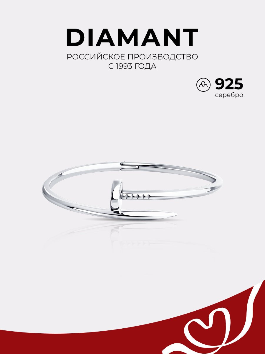 Жесткий браслет Diamant, серебро, 925 проба, родирование, длина 17 см.