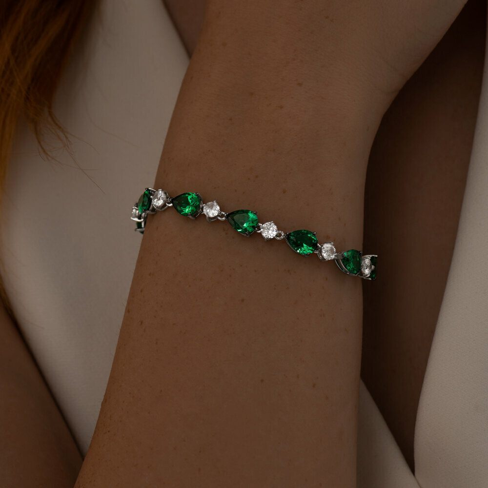 Браслет SOKOLOV, серебро, 925 проба, родирование, фианит, длина 18 см., зелeный