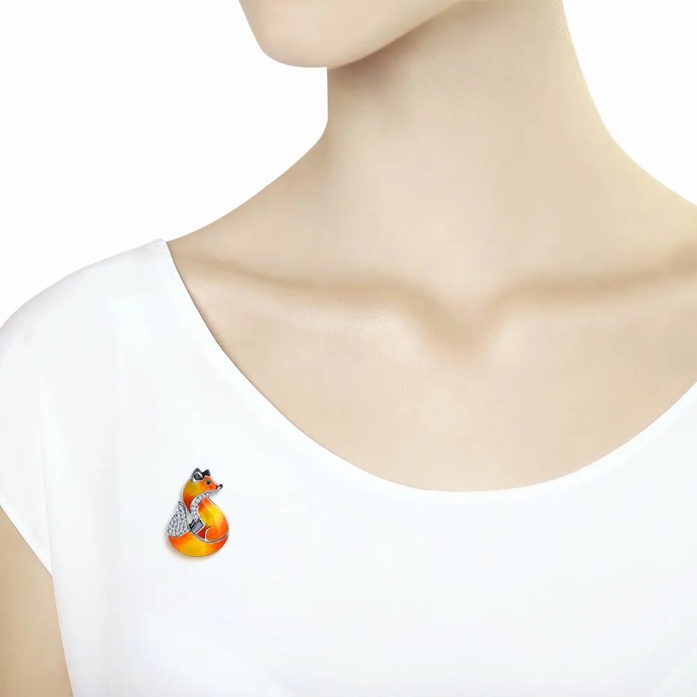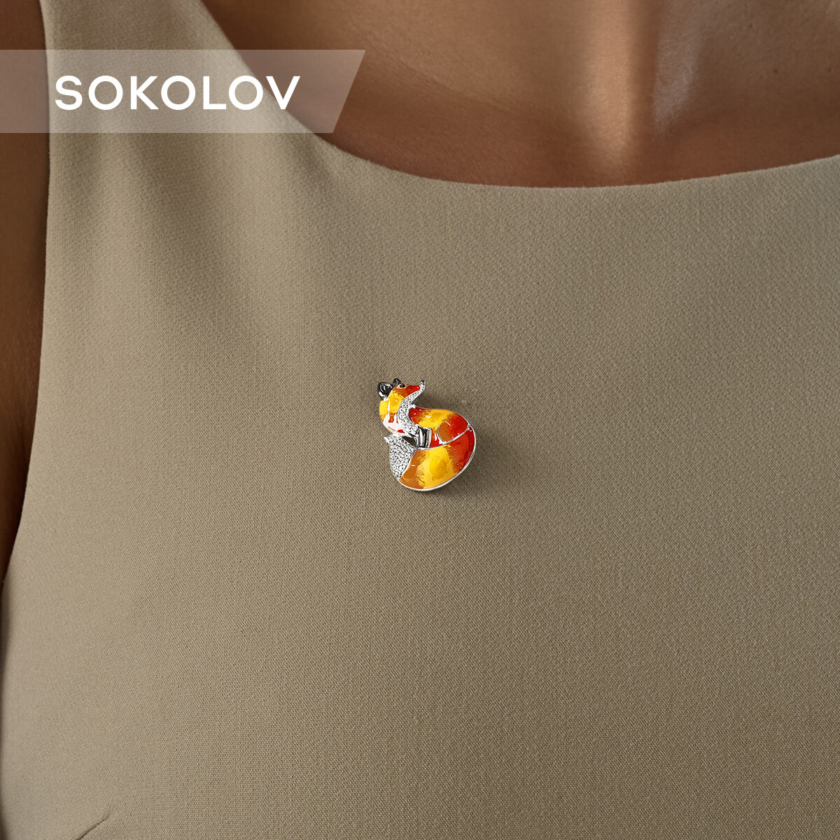 Брошь из золочёного серебра с золочением, родированием, эмалью и фианитами 94040213 интересное: