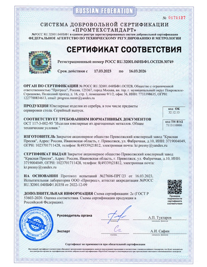 | Вид металла | серебро |