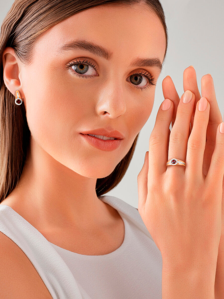 Золотое кольцо с гранатом и фианитами 585 пробы от бренда Магия Золота, 17,5 размер