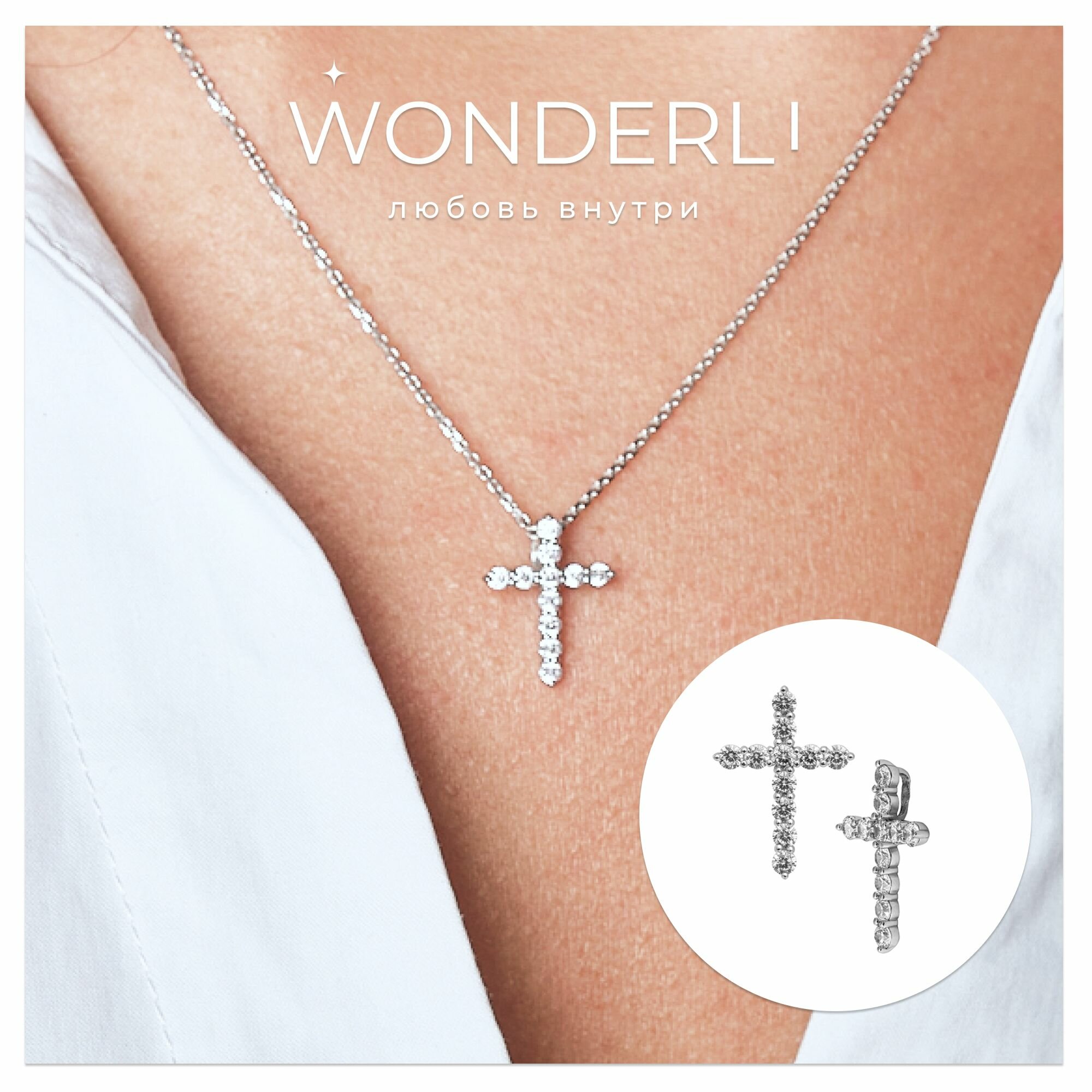 Подвеска крест WONDERLI на шею из серебра с фианитами, 925 проба интересное: