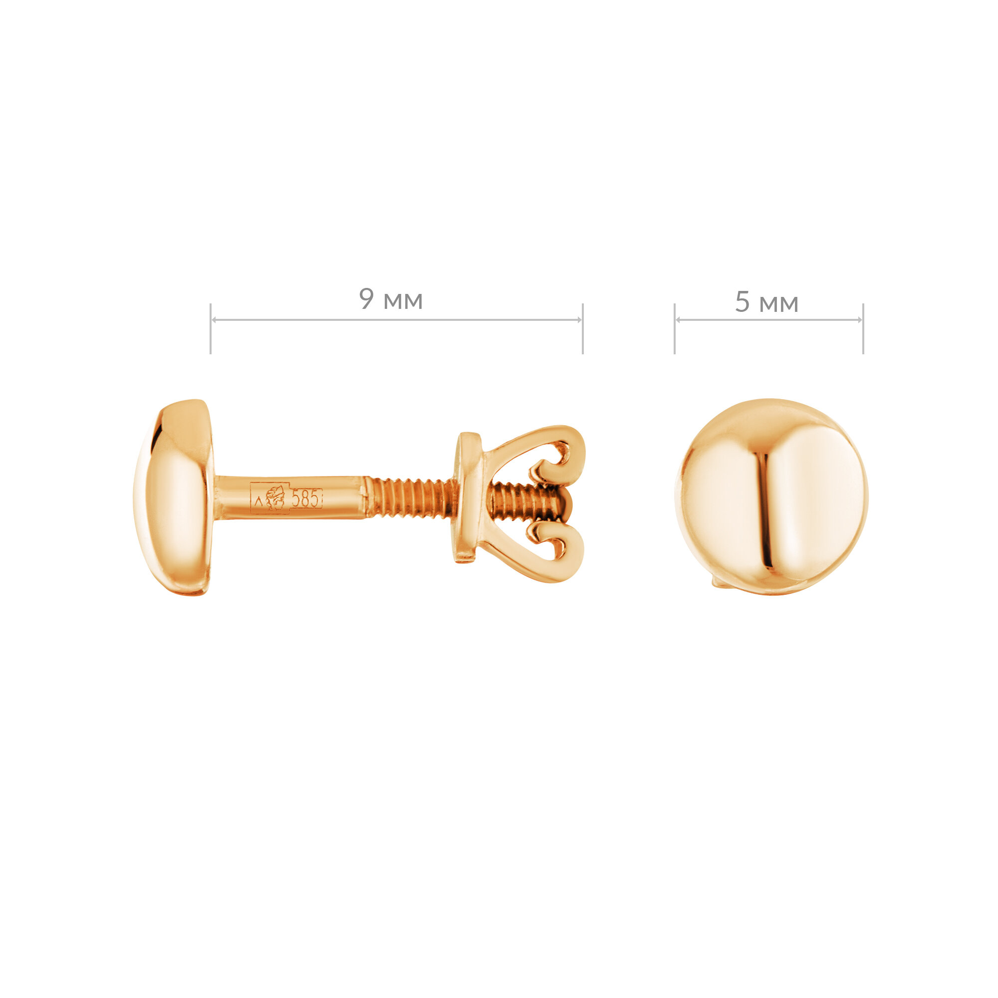 Серьги пусеты Ювелир Карат, красное золото, 585 проба, размер 5 мм, длина 0.5 см, , золотой