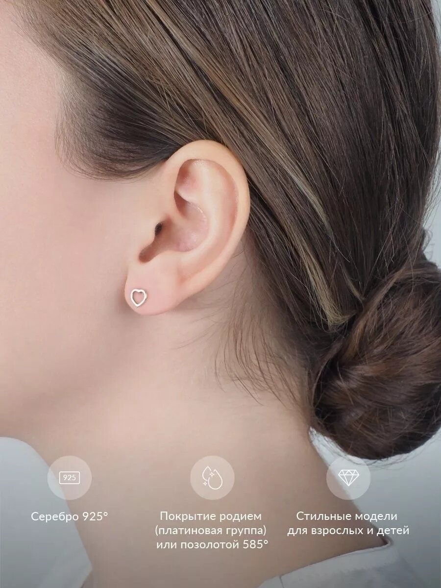 Серьги-пусеты серебряные 925 пробы пусеты Сердце, сережки-гвоздики женские, детские, ср.вес изделия 0,59 гр, арт. 20210225/9 интересное:
