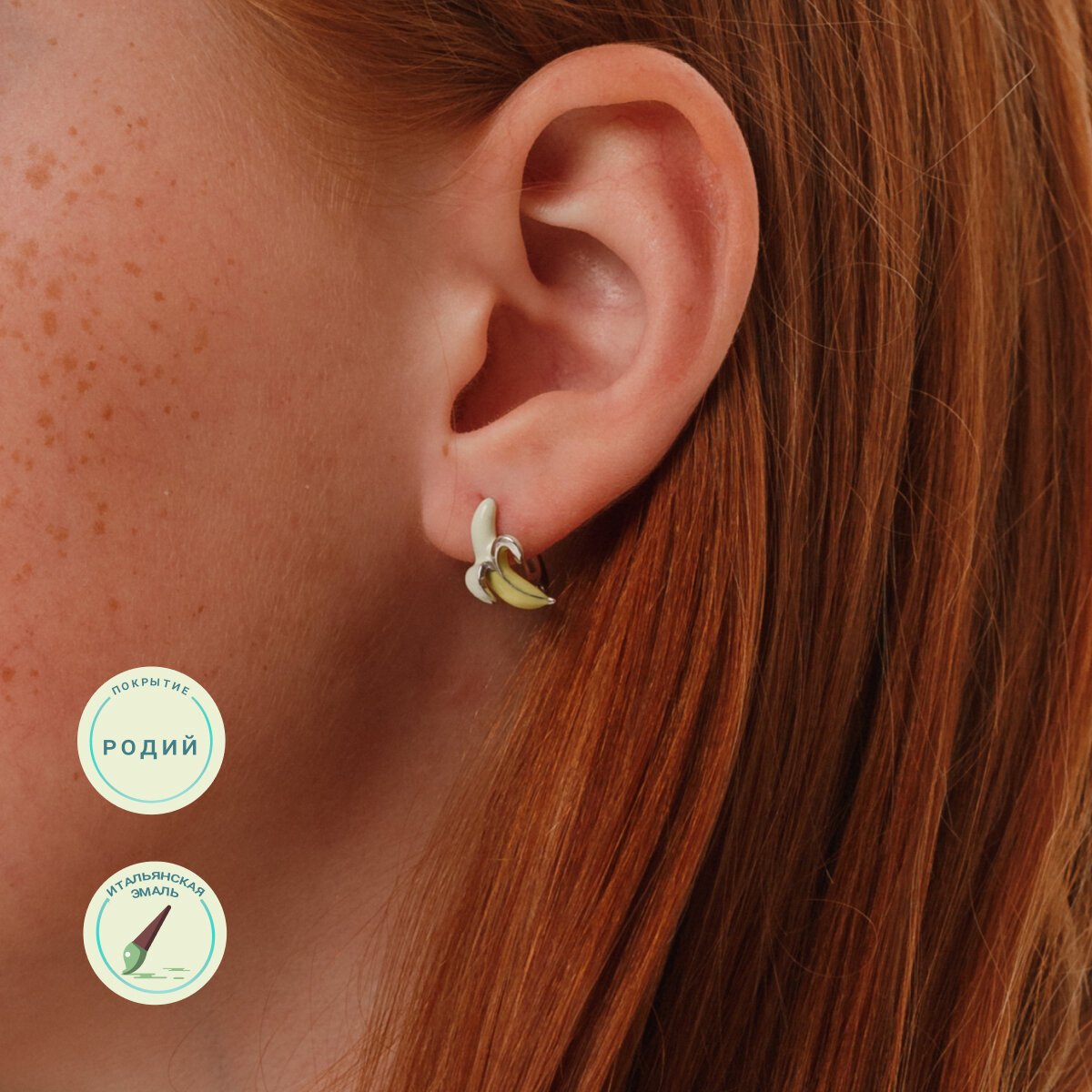 Детские серьги серебряные 925 пробы Бананы родированные с эмалью DEWI KIDS. интересное: