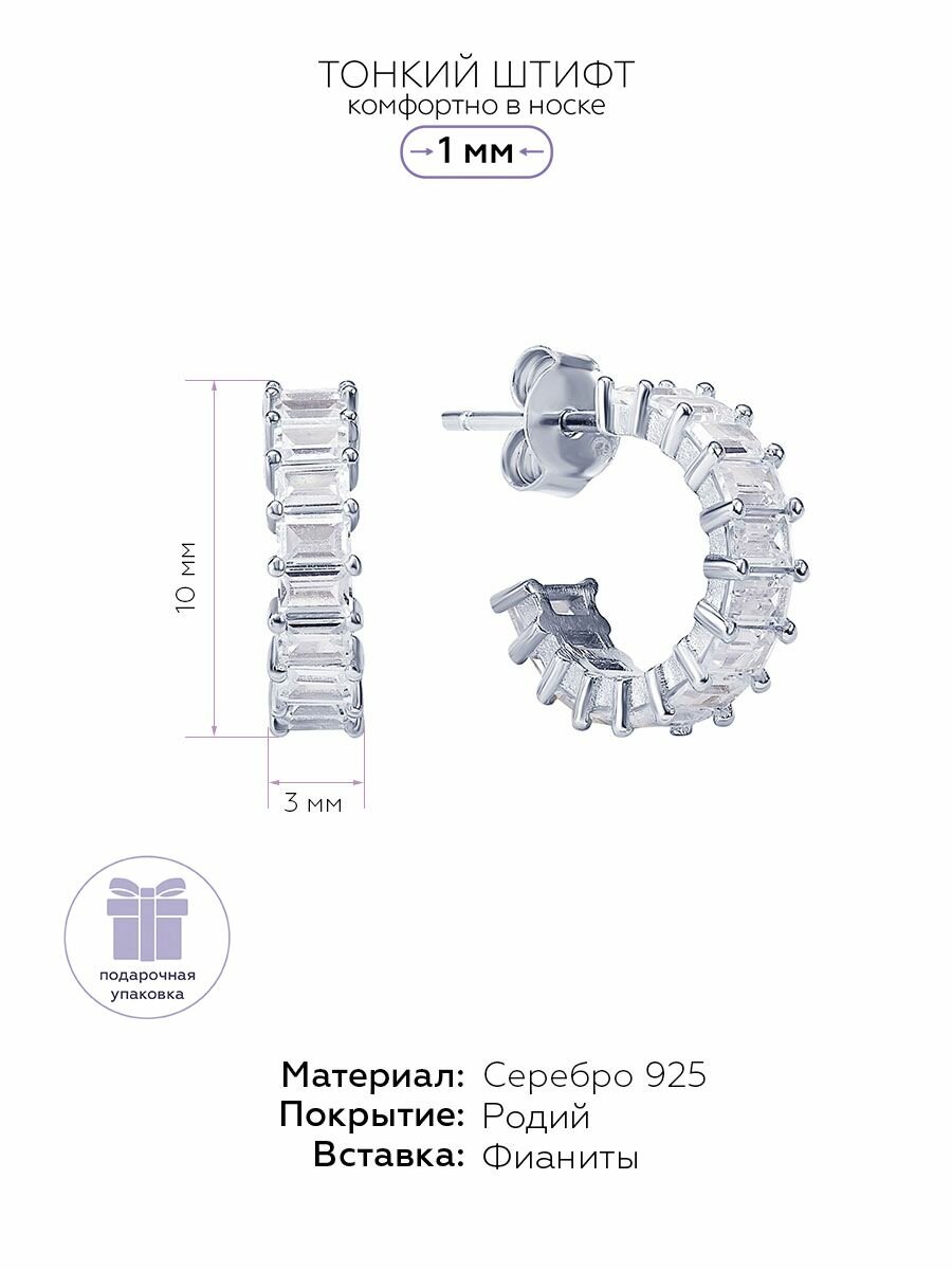 Серьги пусеты, конго MIESTILO, серебро, 925 проба, родирование, фианит, , серебристый