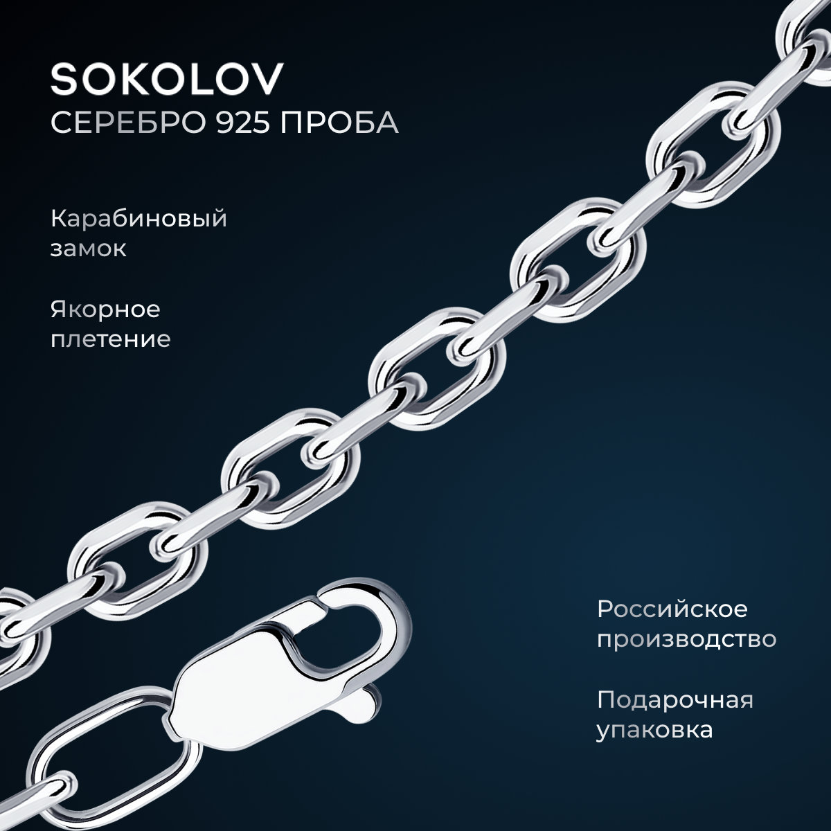 Цепь мужская SOKOLOV из серебра, плетение якорное, 925 проба 968031004, размер 50 см