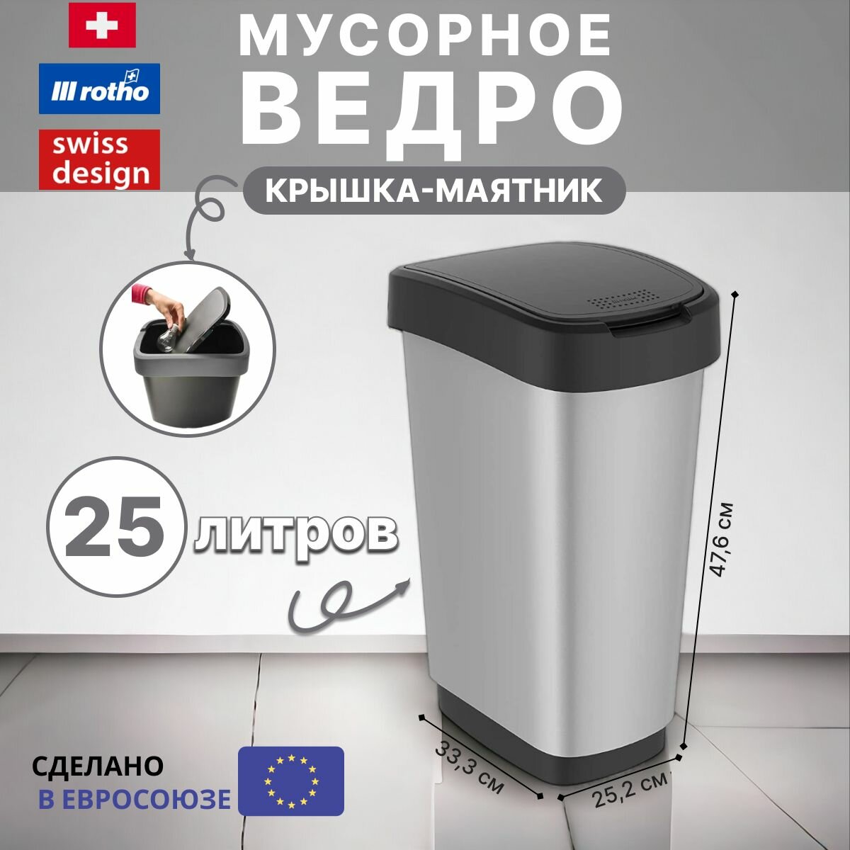 Ведро Rotho мусорное с крышкой Swing Twist 25 л черный,серебро