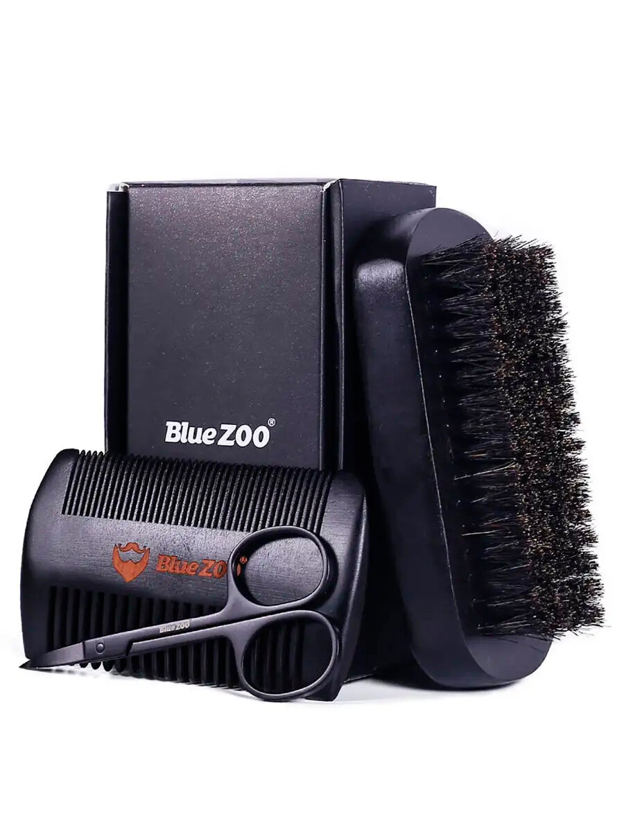 Набор для ухода за бородой 3 предмета (щетка, гребешок, ножницы)