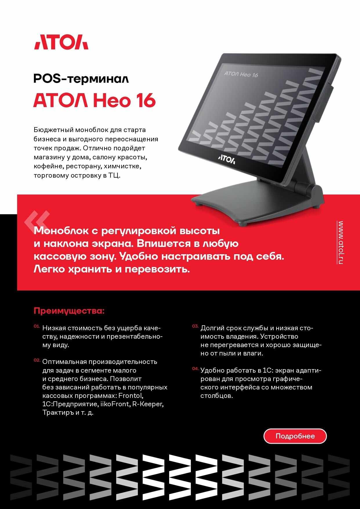 Сенсорный терминал АТОЛ Нео 16 (15.6" P-CAP, Intel Celeron J3455, SSD 128GB, RAM 8GB), без MSR, без ОС. интересное: