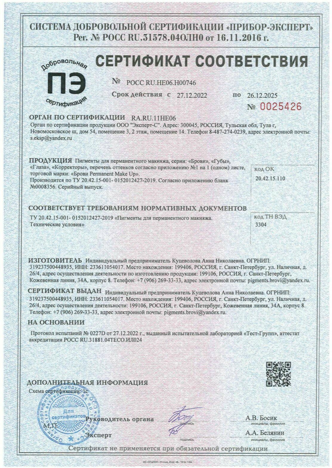 | Совместимость | Совместим с серией пигментов БРОВИ |