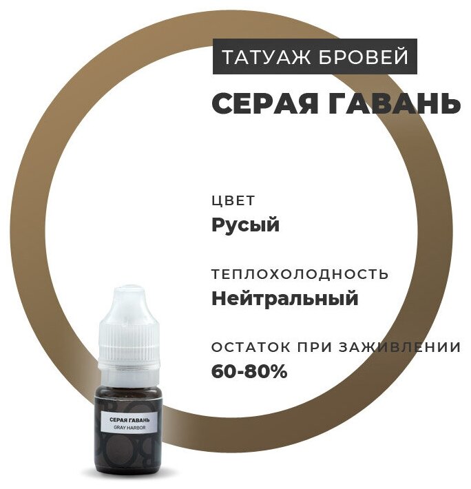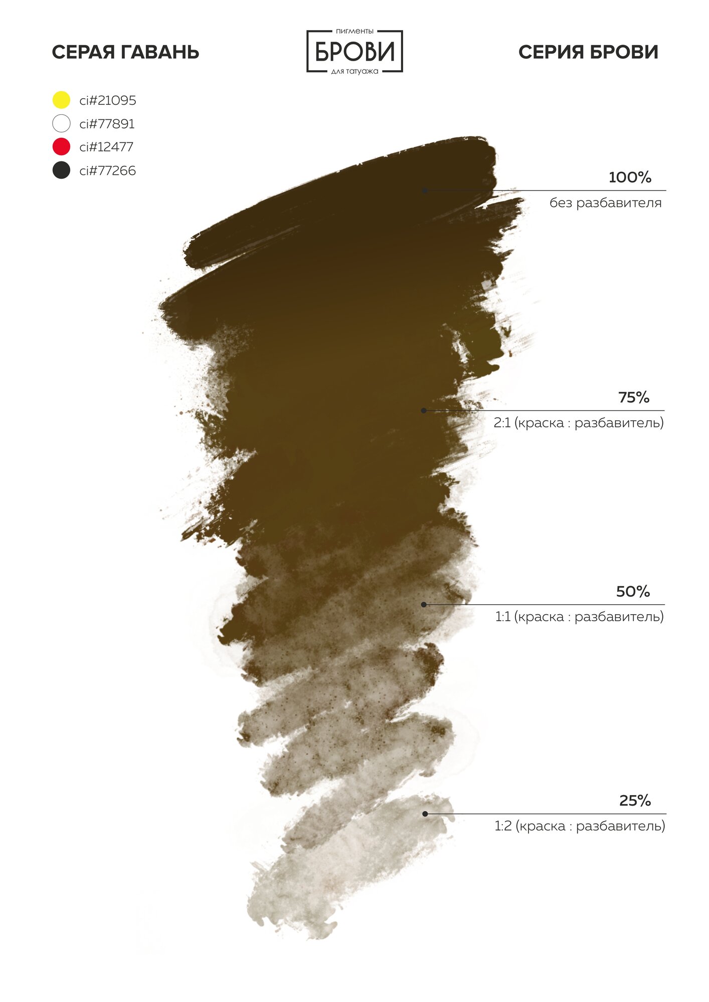| Подробная комплектация | Пигмент для перманентного макияжа бровей БРОВИ Серая Гавань 1 флакон (5 мл) |