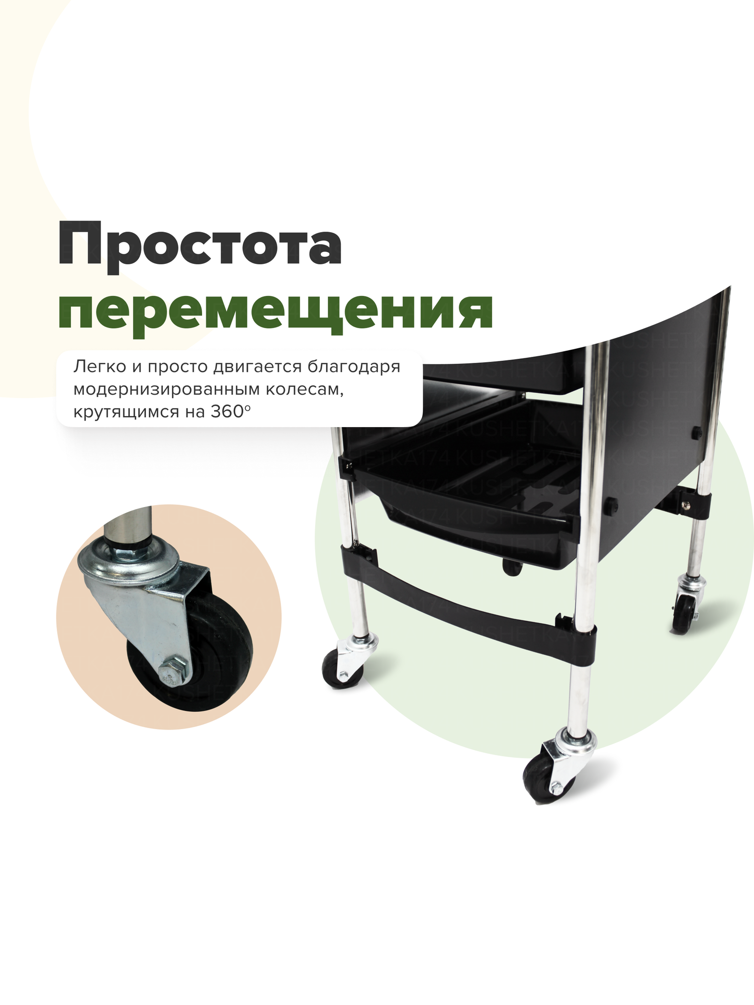 Kushetka174 / Тележка парикмахерская Блик / Тележка для парикмахера / Этажерка для салона красоты интересное: