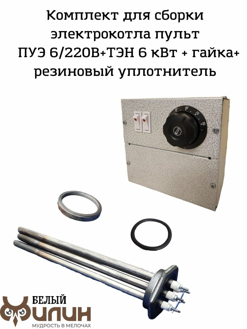 Купить Электрокотел. Комплект для сборки: пульт управления ПУЭ 6 кВт 220В, ТЭН 6 кВт из легированной стали, уплотнительное кольцо, гайка