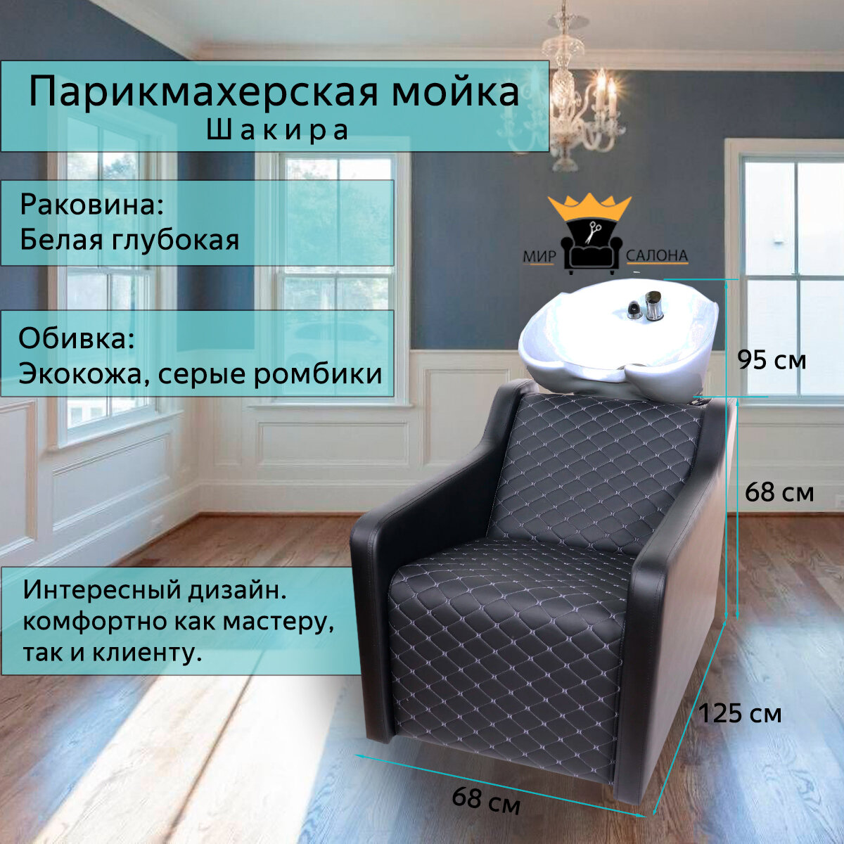 Парикмахерская мойка "Шакира", белая глубокая раковина, серые ромбики интересное: