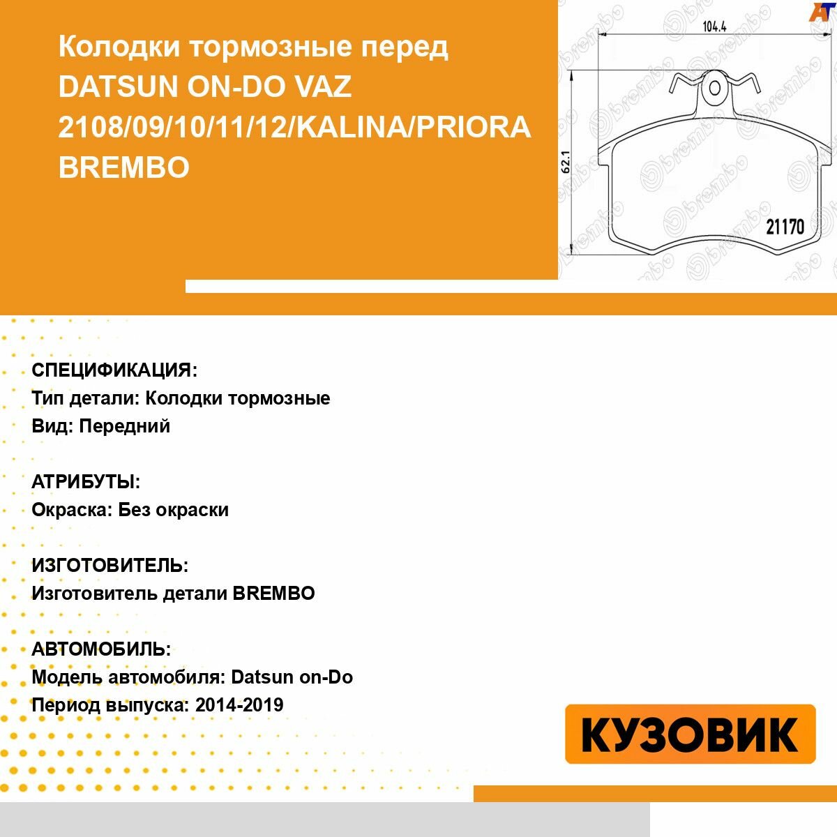 | Модель автомобиля | Datsun on-DO / Great Wall Safe / LADA 2108 / LADA 2110 Богдан / LADA Granta / LADA Kalina / LADA Priora / LADA Samara / Maybach 57 / Peugeot 407 / ЗАЗ-1102 Таврия |
