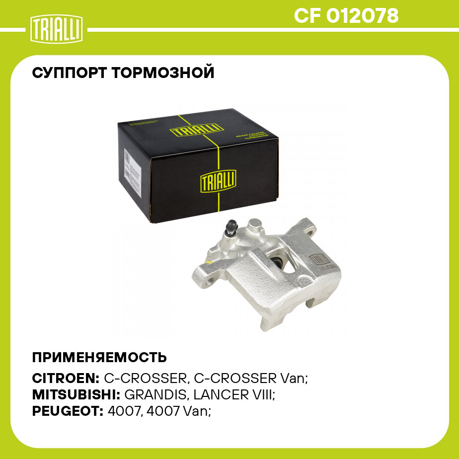 Суппорт тормозной для автомобилей Mitsubishi Outlander II (06-) задний левый d=38мм CF 012078 TRIALLI интересное: