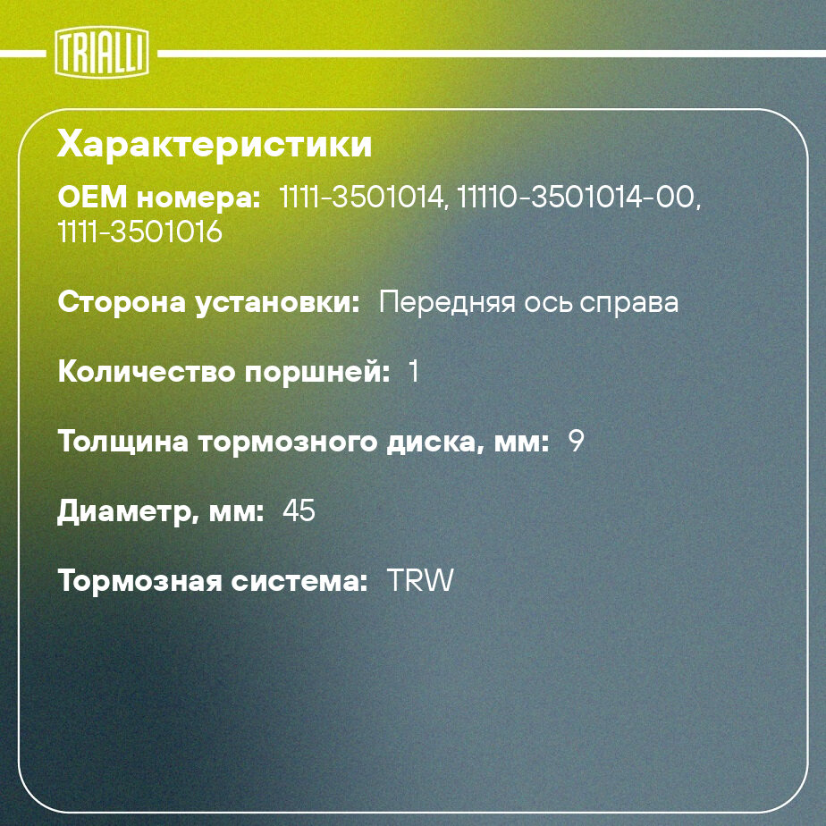 Суппорт тормозной для автомобилей Лада 1111 передний правый d=45мм (в сборе со скобой) CF 412 TRIALLI интересное: