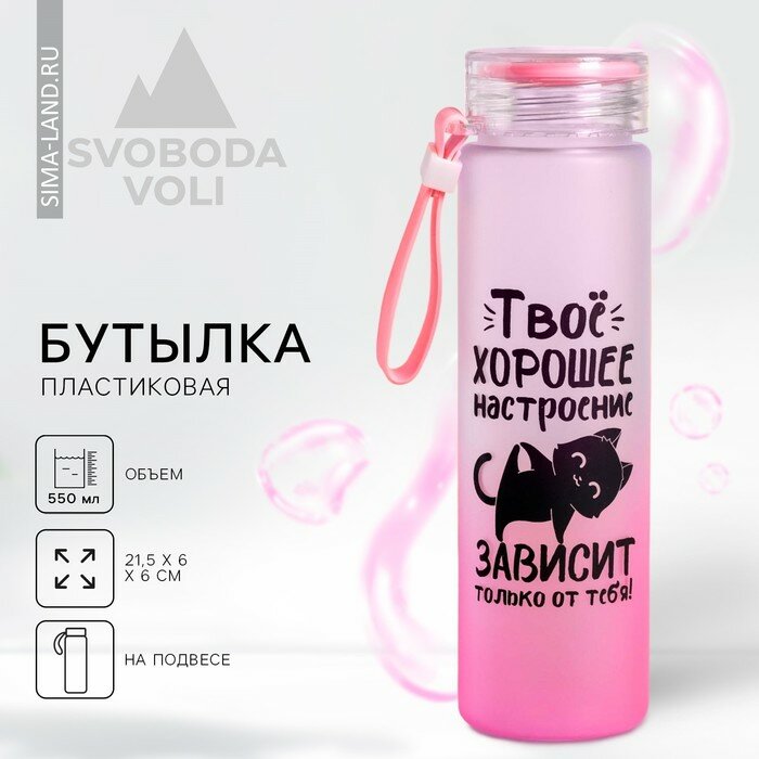 Купить Бутылка SVOBODA VOLI «Твое хорошее настроение", для воды. объем 550 мл, цвет розовый