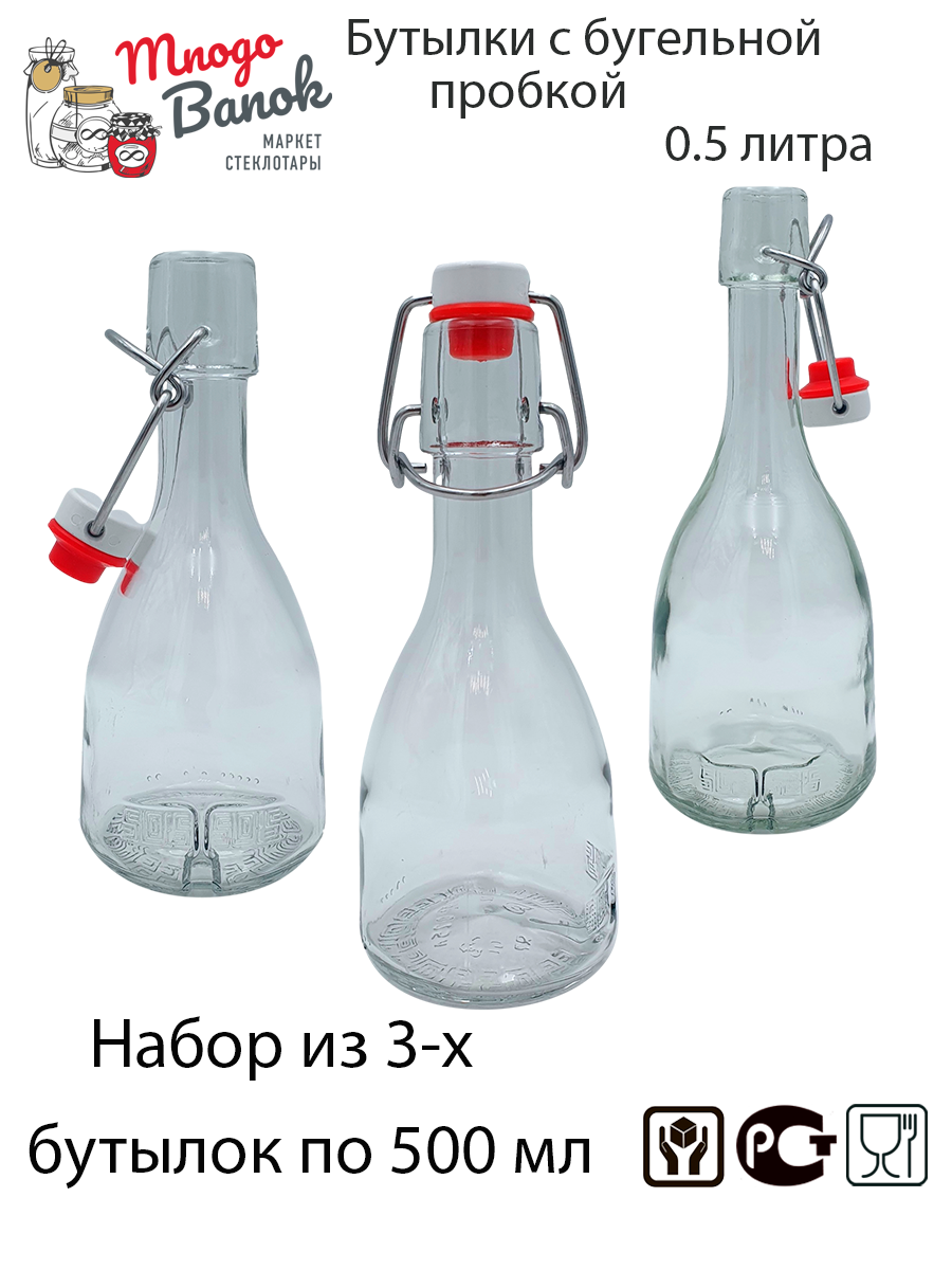 Бутылка Бабл 500мл стеклянная с бугельной пробкой, набор 3 шт