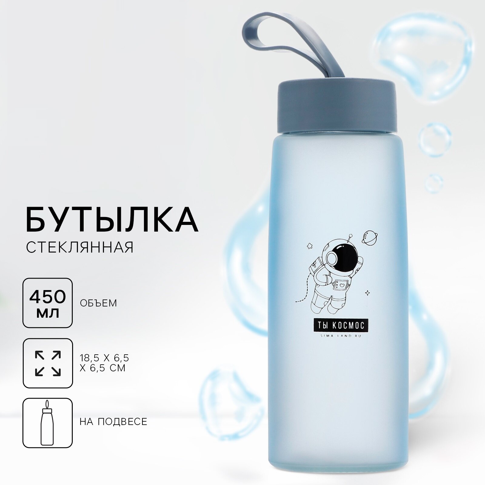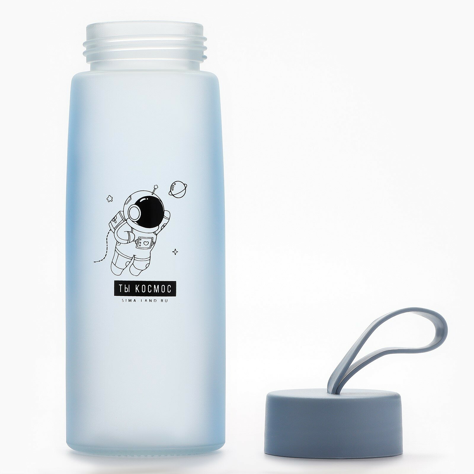 | Дополнительная информация | Рисунок выполнен из деколи, имеется ремешок на крышке. Стеклянную бутылку не рекомендуется использовать в ПМ, так как матовое покрытие при таком мытье может пострадать. Стекло является жаропрочным материалом, но рекомендуем разогревать жидкость в стеклянной бутылке без крышки. |