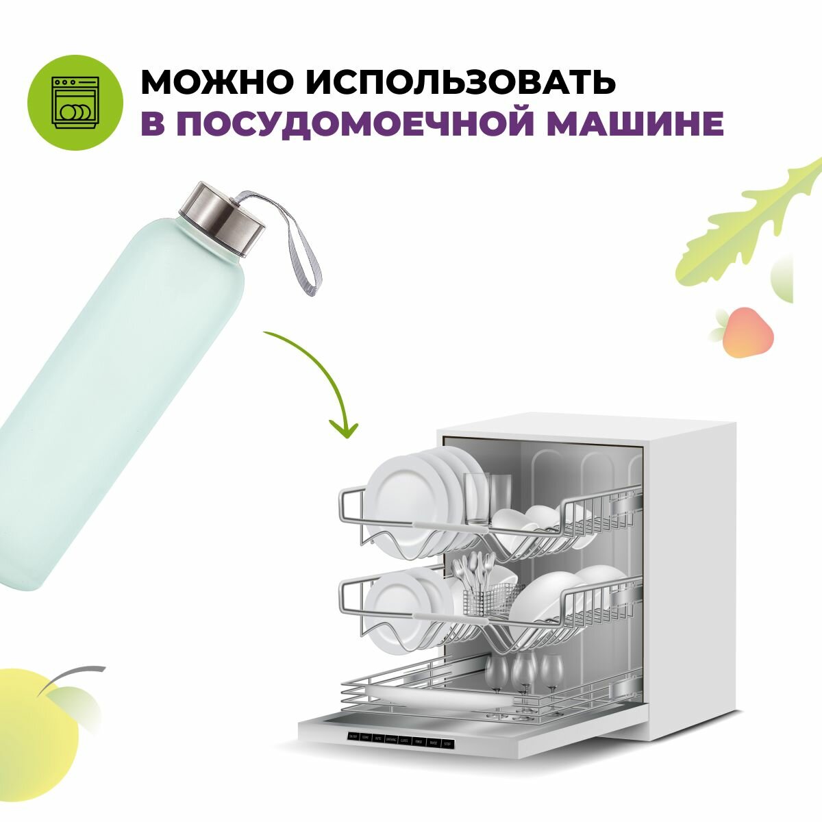 Стеклянная бутылка для воды Eley 550мл, с Soft-touch покрытием интересное: