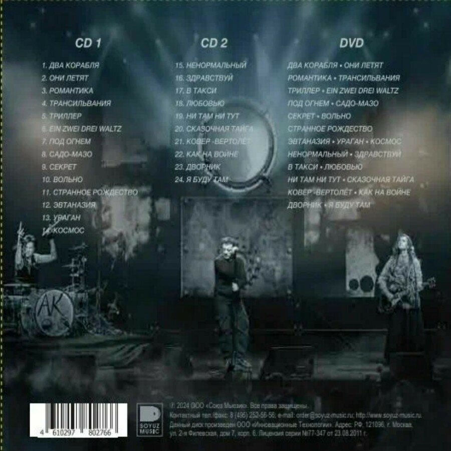 | Треклист | CD 1 1. Два Корабля 2. Они Летят 3. Романтика 4. Трансильвания 5. Триллер 6. Ein Zwei Drei Waltz 7. Под Огнем 8. Садо-Мазо 9. Секрет 10. Вольно 11. Странное Рождество 12. Эвтаназия 13. Ураган 14. Космос CD 2 15. Ненормальный 16. Здравствуй 17. В Такси 18. Любовью 19. Ни Там Ни Тут 20. Сказочная Тайга 21. Ковер -Вертолёт 22. Как На Войне 23. Дворник 24. Я Буду Там DVD 1. Два Корабля 2. Они Летят 3. Романтика 4. Трансильвания 5. Триллер 6. Ein Zwei Drei Waltz 7. Под Огнем 8. Садо-Мазо 9. Секрет 10. Вольно 11. Странное Рождество 12. Эвтаназия 13. Ураган 14. Космос 15. Ненормальный 16. Здравствуй 17. В Такси 18. Любовью 19. Ни Там Ни Тут 20. Сказочная Тайга 21. Ковер -Вертолёт 22. Как На Войне 23. Дворник 24. Я Буду Там |