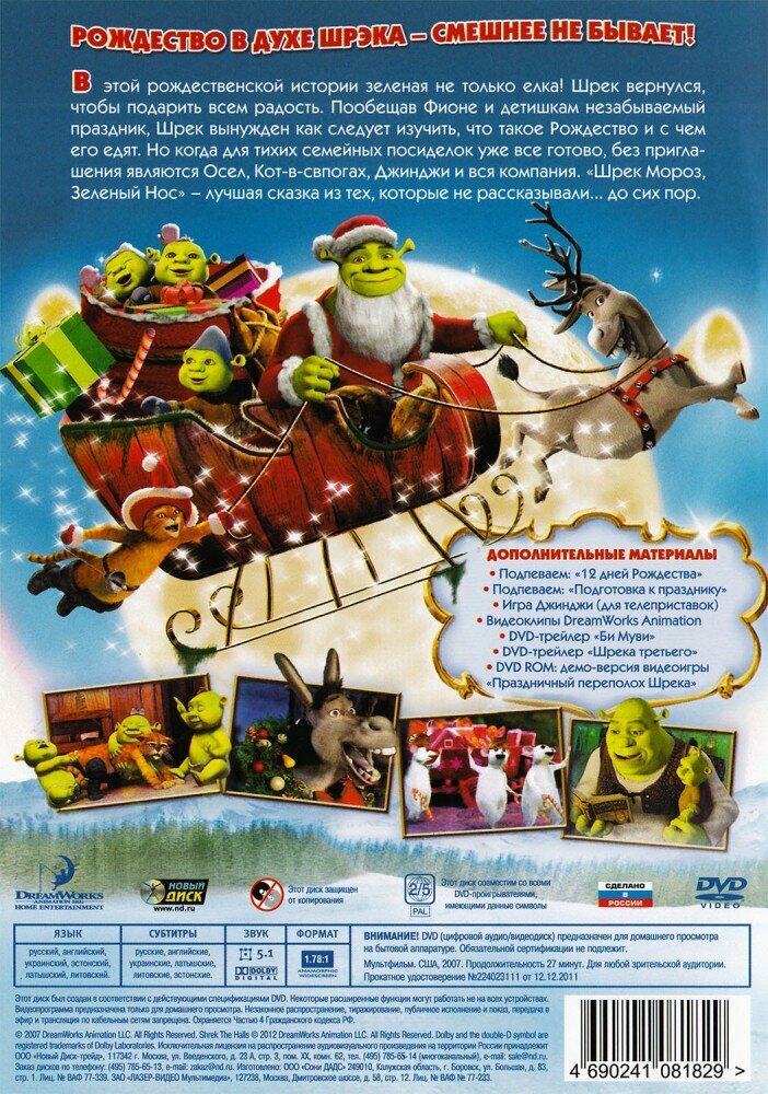 Шрэк -1,2,3,4, Мороз / Кот в сапогах. Коллекция мультфильмов (6 DVD) (2001 год, ДВД диск, DVD Box) интересное: