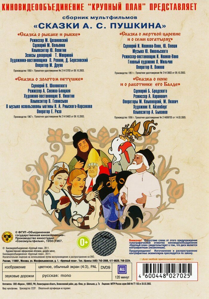 Сказки А. С. Пушкина. Сборник мультфильмов (DVD) (1950 год, ДВД диск, DVD Box) интересное: