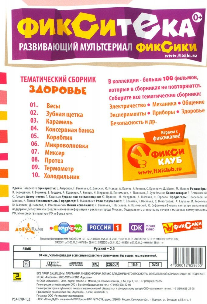 Фиксики. Фикситека. Здоровье (DVD) (2014 год, ДВД диск, DVD Box) интересное: