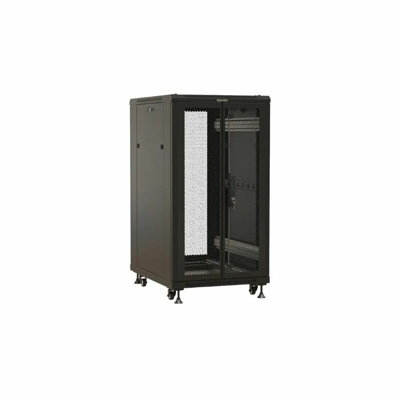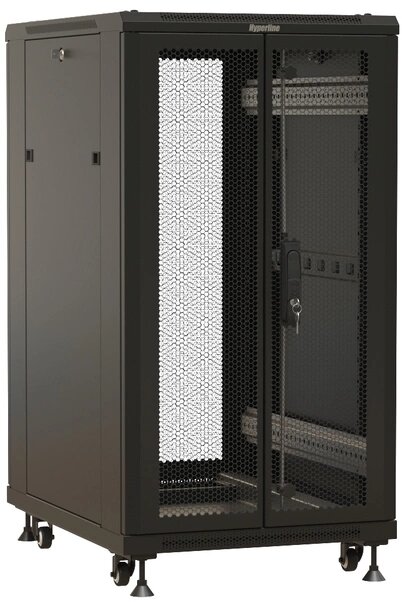 Купить Hyperline Шкаф коммутационный Hyperline (TTBR-1866-DD-RAL9004) напольный 18U 600x600мм пер.дв.перфор.2ств. задн.дв.перфор. 1000кг черный 510мм 53.8кг 988мм IP20 сталь