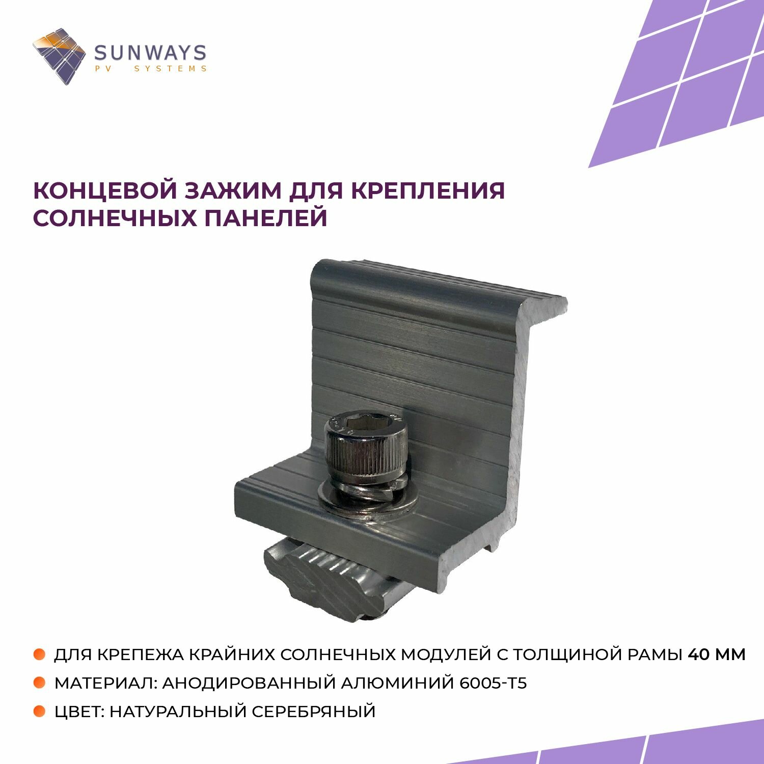 Купить Концевой зажим для крепления солнечных панелей, толщиной 40 мм, Sunways, 1 шт.
