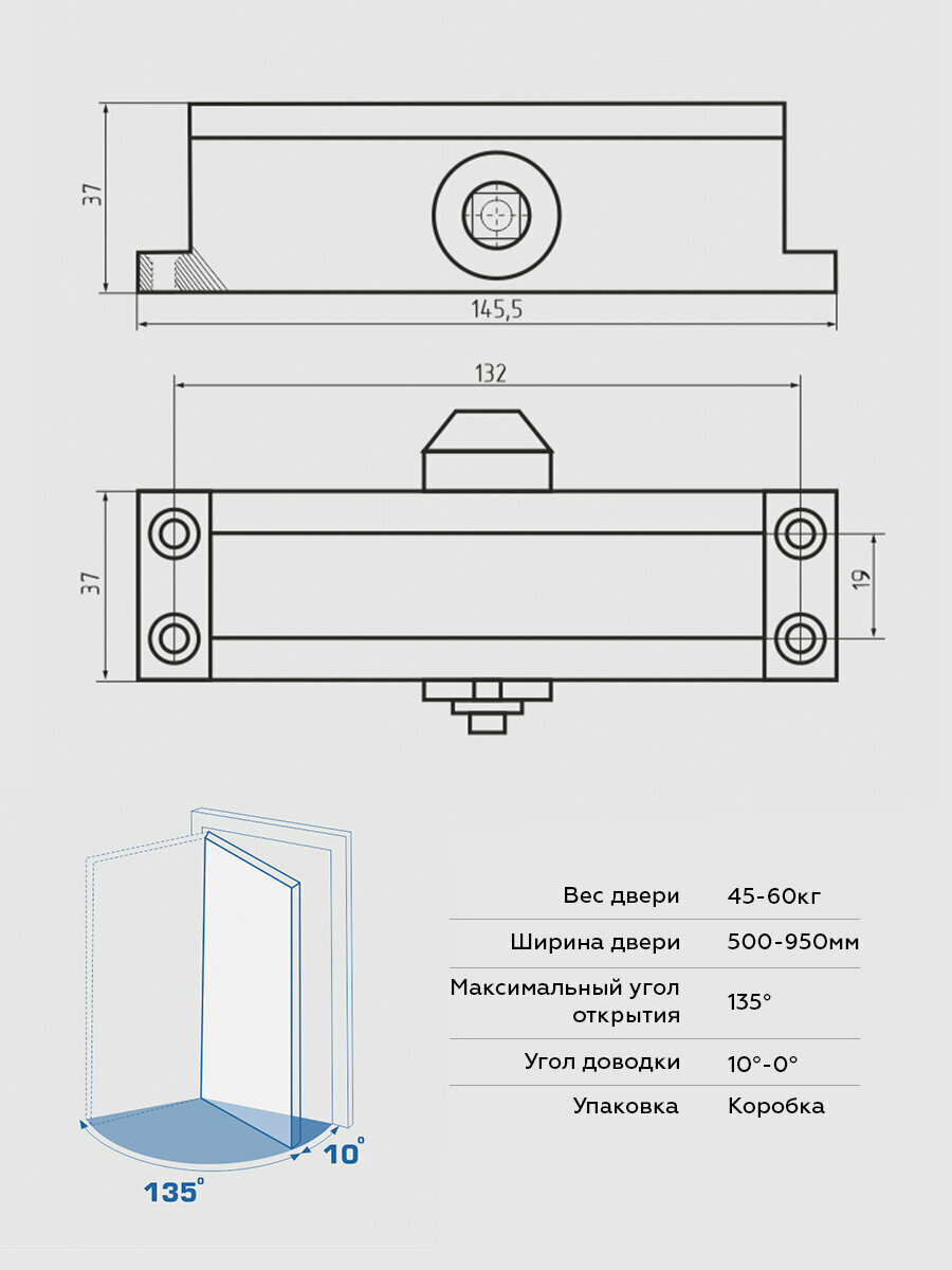Доводчик дверной `чибис` морозостойкий, металлический, 45-60кг, цвет серый/графит