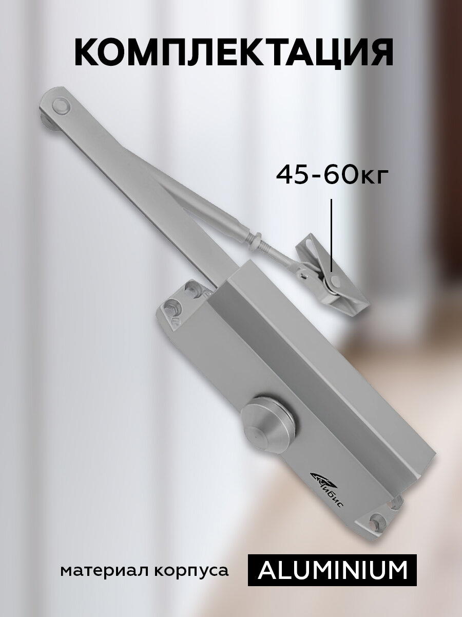 Доводчик дверной `чибис` морозостойкий, металлический, 45-60кг, цвет серебряный интересное: