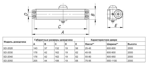 Доводчик Punto (Пунто) дверной SD-2020 BL 25-45 кг (черный) интересное: