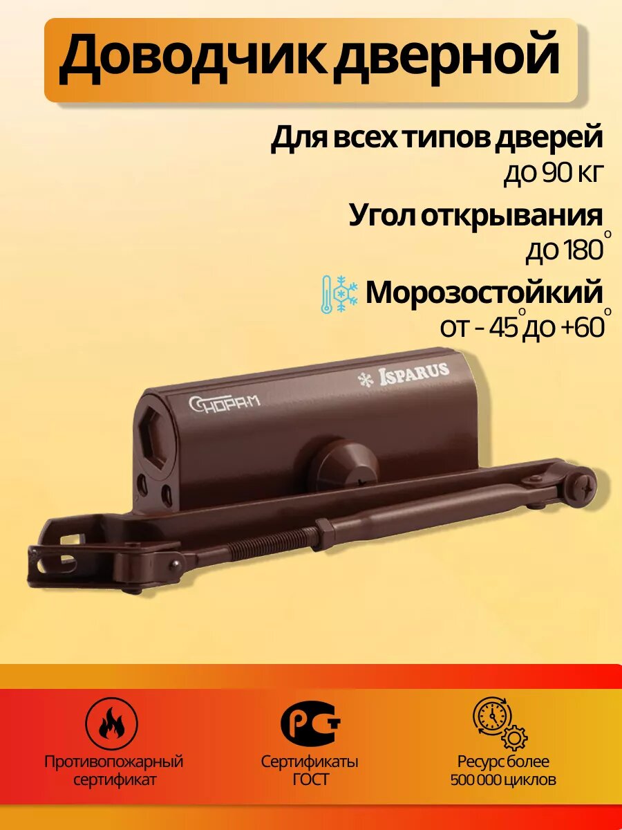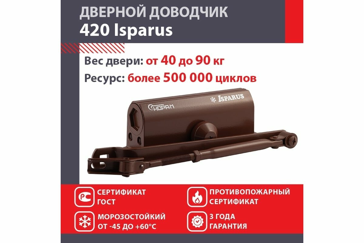 Купить Доводчик дверной морозостойкий Нора-М Isparus 420, от 40 до 90 кг, коричневый