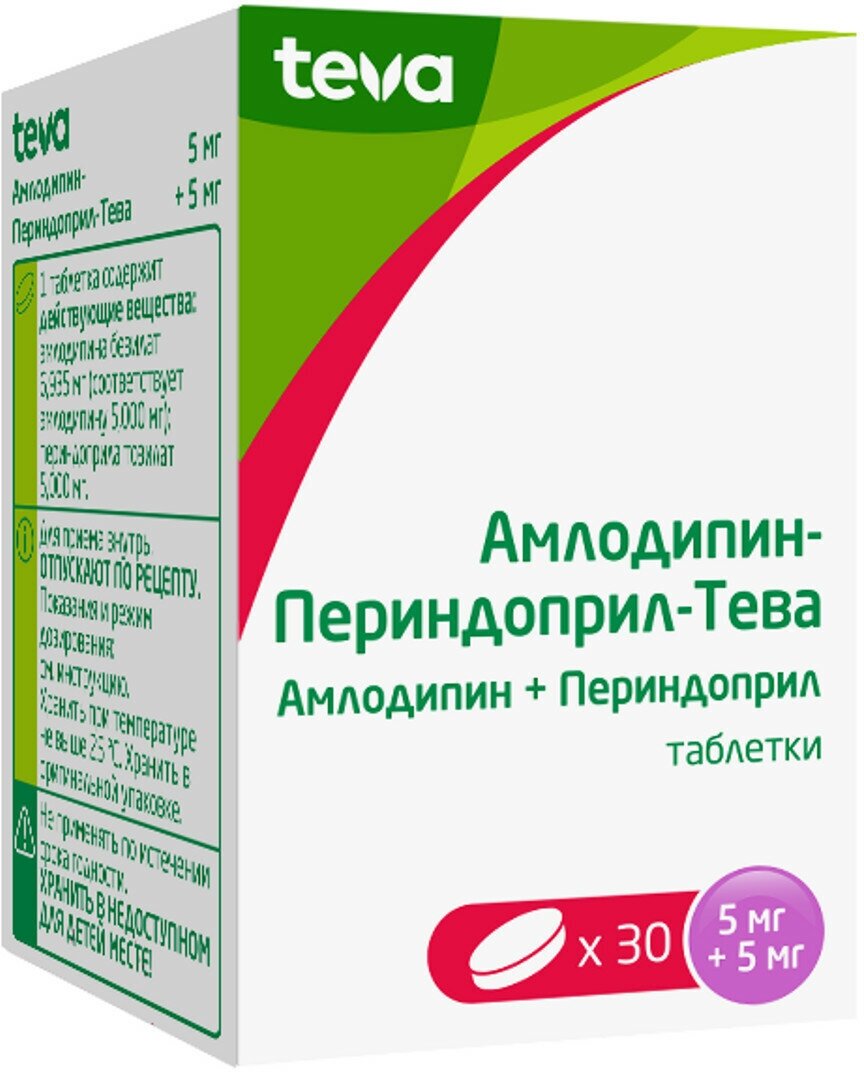 Амлодипин-Периндоприл-Тева таб., 5 мг+10 мг, 30 шт.