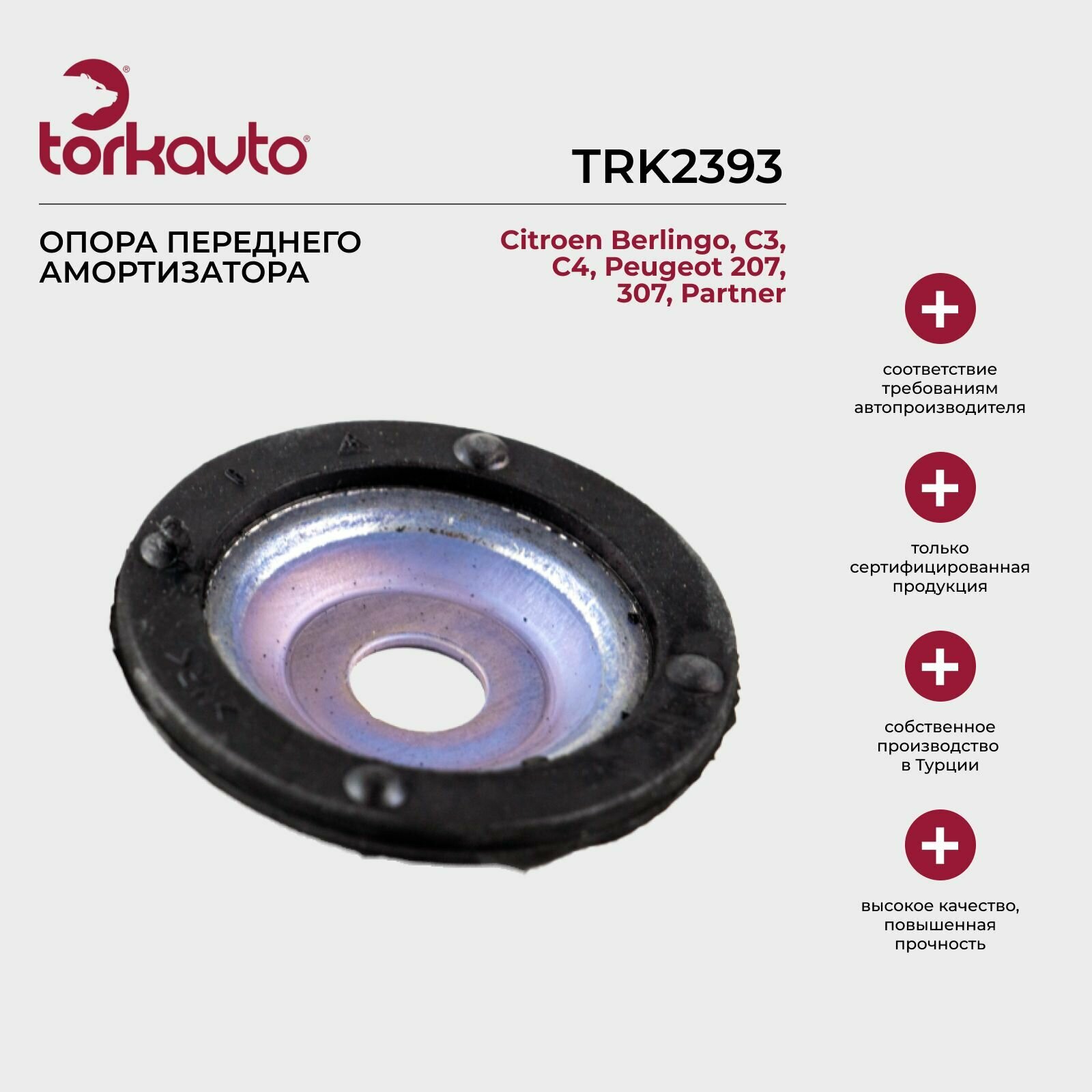 Опора переднего амортизатора Tork Avto Citroen Berlingo, C4, Peugeot Partner; Ситроен Берлинго, С4, Пежо Партнер интересное: