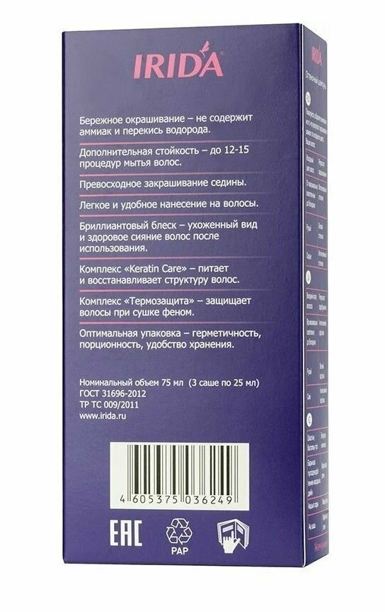 Ниже Вы можете прочитать отзывы на Оттеночный шампунь для волос IRIDA M Classic Жемчужный 3*25 мл, ознакомится с подробными характеристиками, посмотреть интересные обзоры и фотографии на Оттеночный шампунь для волос IRIDA M Classic Жемчужный 3*25 мл.