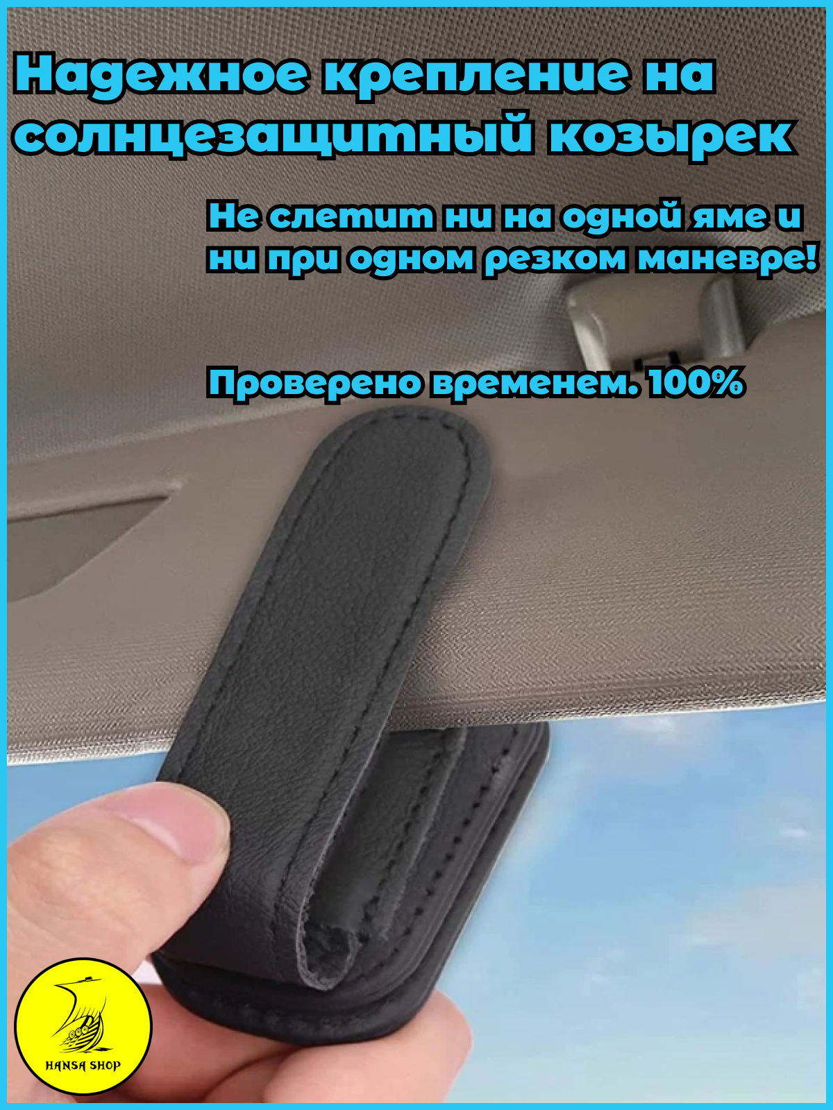 Держатель для очков автомобильный HANSA SHOP / крепление на солнцезащитный козырек для очков / магнитный зажим в машину кожаный, на магните, черный интересное: