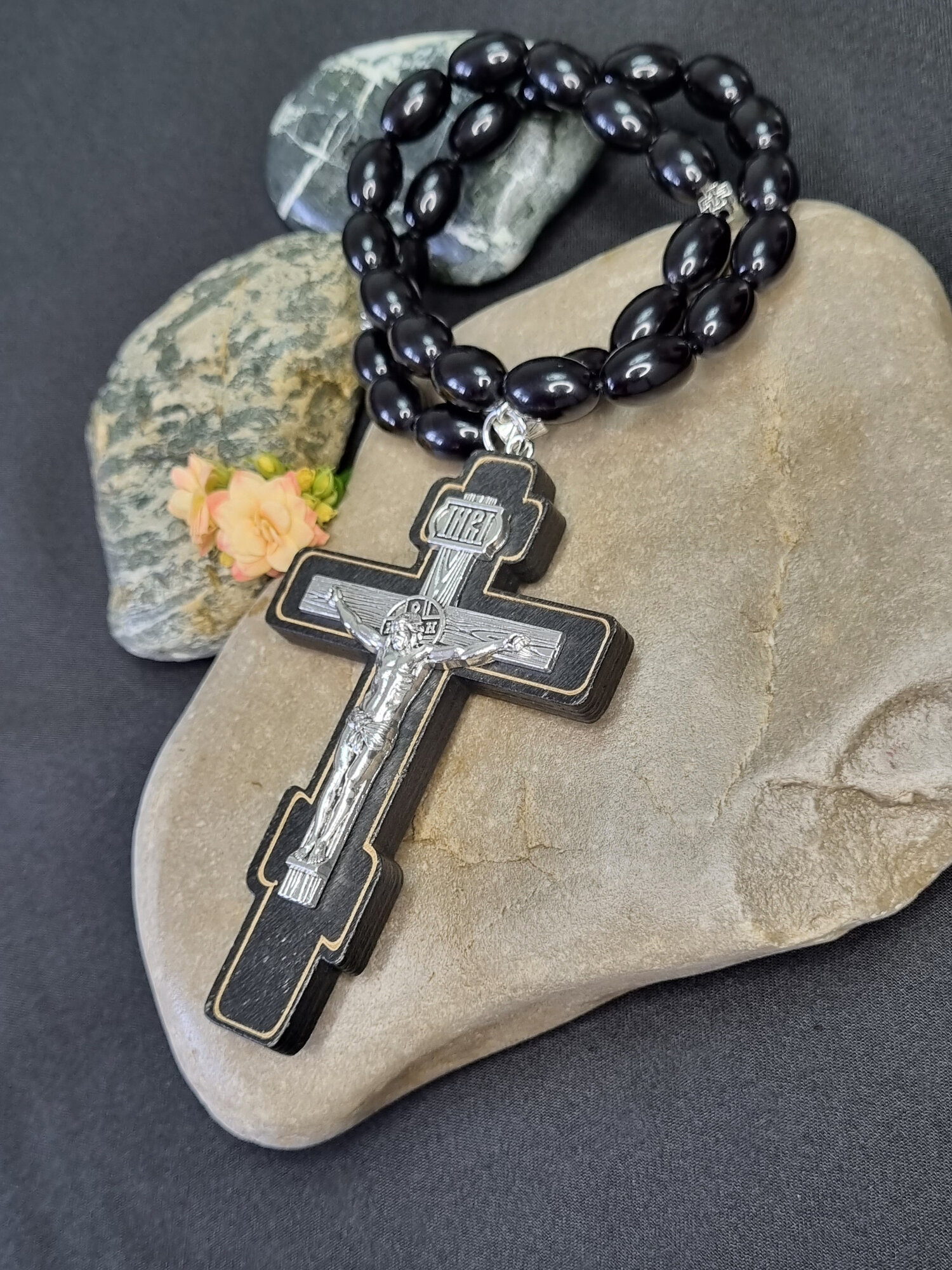 | Подробная комплектация | Крест подвесной в машину на бусах четках |