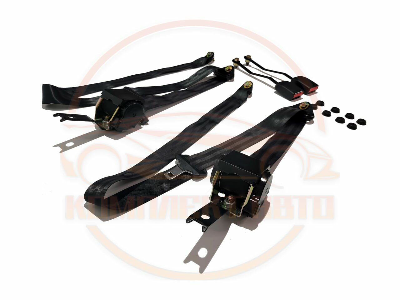 | Подробная комплектация | Две катушки ремня безопасности, два фиксатора ремня , болты, кронштейны прикреплены к катушкам, заглушки болтов |
